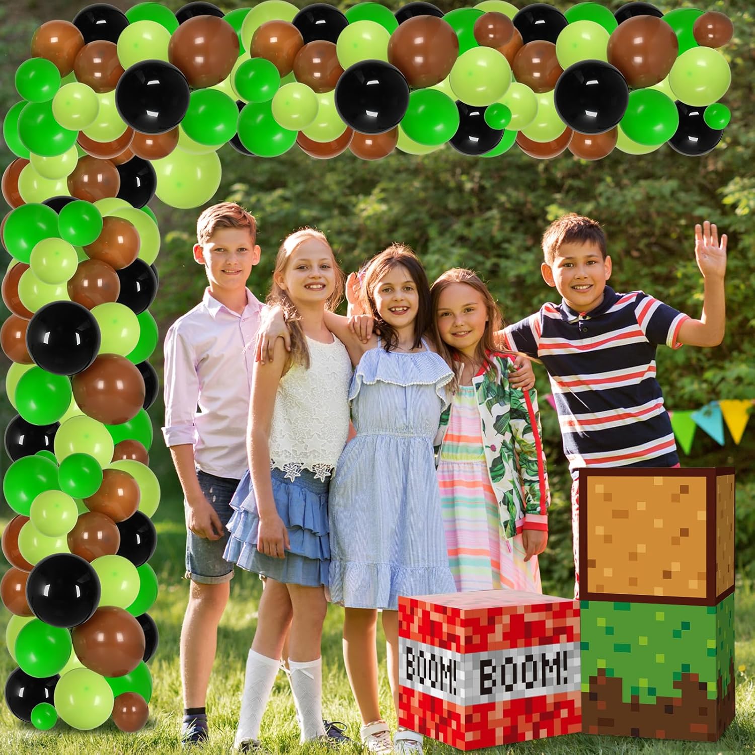 Create memorable photos backdrop: The pixel themed boxes and balloons feature a green, brown and red pixel design, serving as an ideal backdrop for photography, creating stunning and memorable photos on your video game party and kid’s birthday party. Guests will love capturing moments against the pixel balloon backdrop, making it an ideal addition to any photo booth or selfie station.