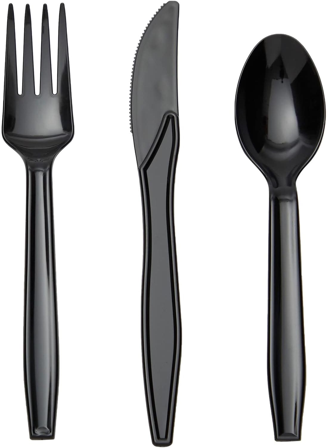 Includes enough tableware for 24 guests; contains 24 of each of the following: Plastic Knives, Spoons, Forks and Paper Plates, Napkins and Cups. The plastic silverware is in red while the paper plates, napkins and cups are in black with video game console print.