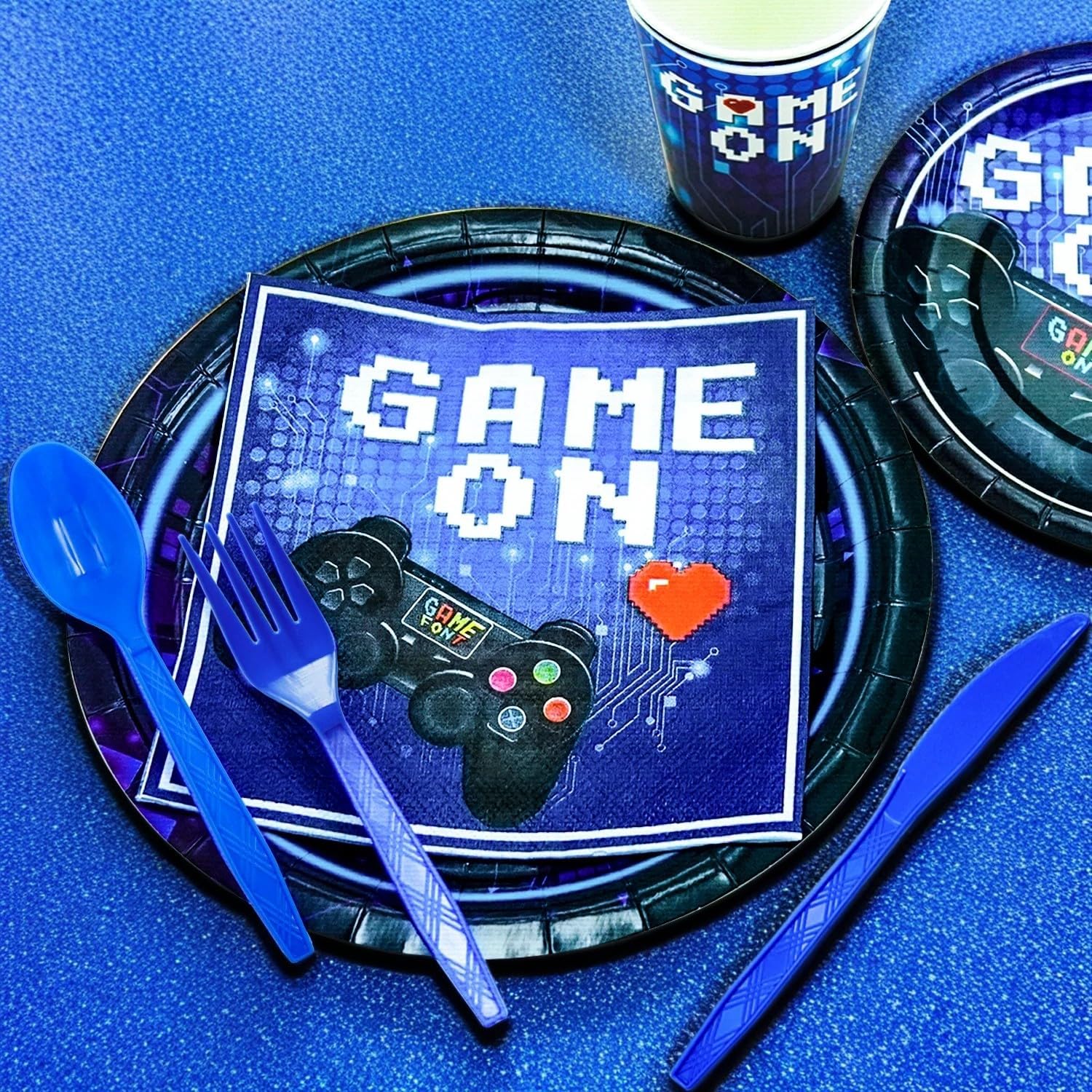 Game Party Design:This set of party tableware is designed with a game atmosphere to provide more fun for your game party,This set of video game party tableware works well with other game party decorations to make your party even more exciting.