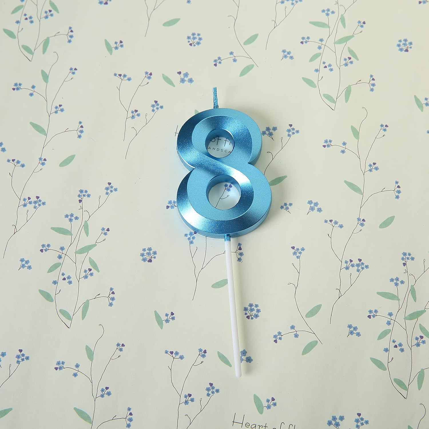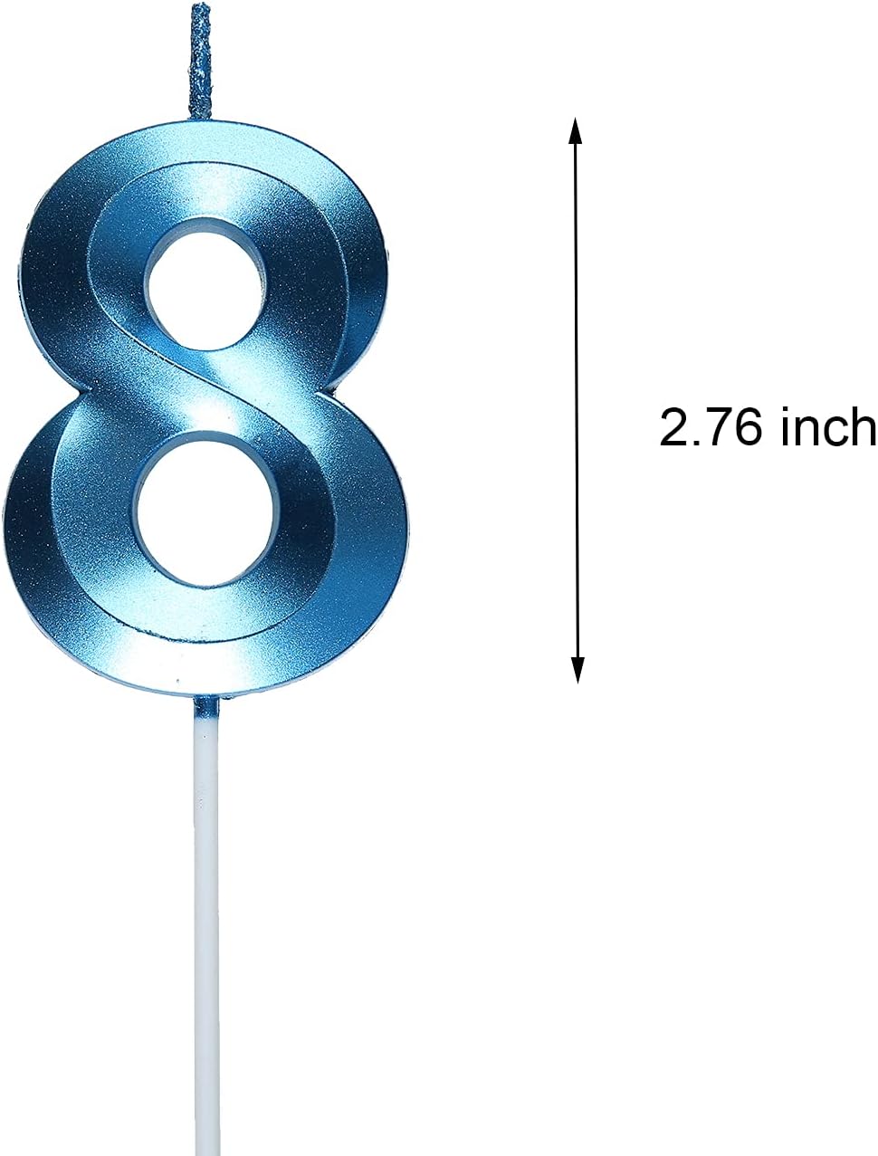 2.76 inch Blue 8 Birthday Candles,3D Number 8th Cake Topper for Birthday Decorations No 18 81 82 83 84 85 86 87 88 89