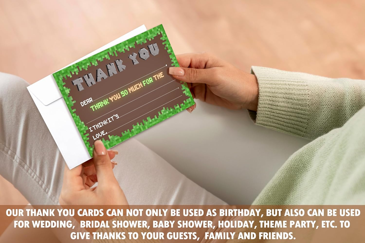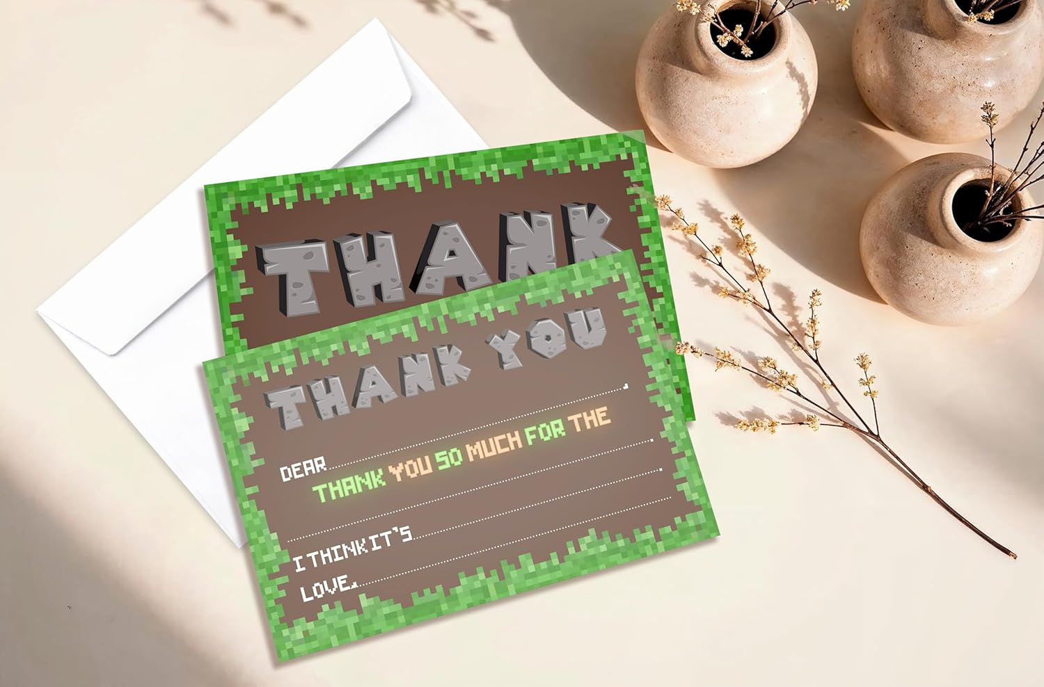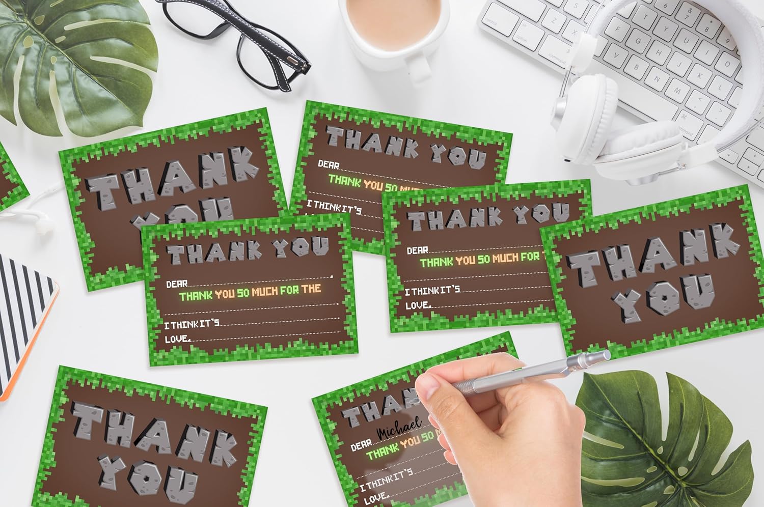 20 Thank You Cards With Envelopes, Gaming Greeting Cards Gifts For Kids Boys Girls, Blank Thank You Note For Birthday Wedding Baby Shower Bridal Shower Graduation, 13