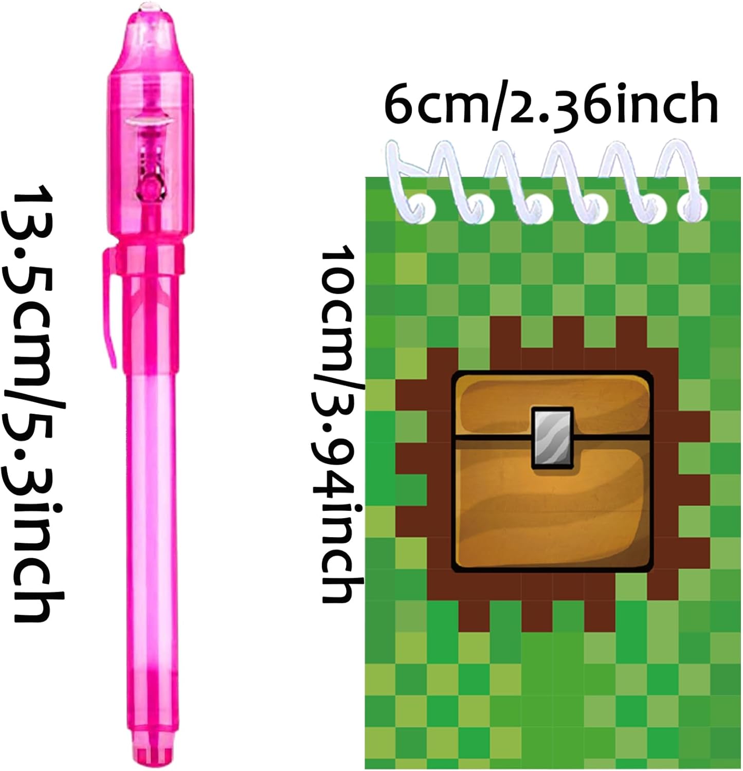 Package includes 12 invisible ink pen with uv light + 12 Pixel Theme mini notepads (2.26-inch x 3.9 inch)