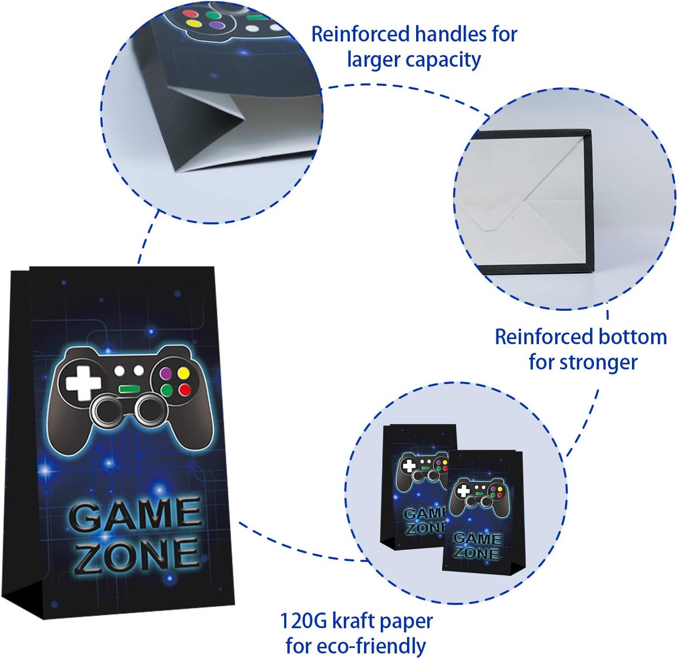 Reliable material: the video game party bags are made of kraft paper and printed with safe ink; They are sturdy, lightweight and no smell.