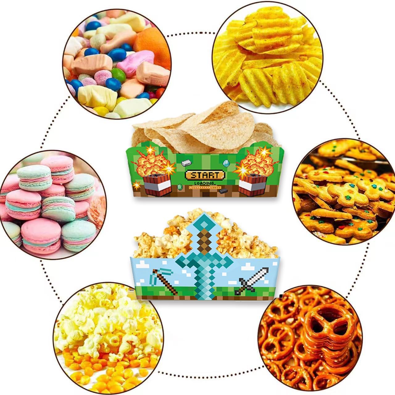 24pcs Games Themed Paper Food Trays for Birthday Party Supplies Kids Birthday Party Decorations Favors