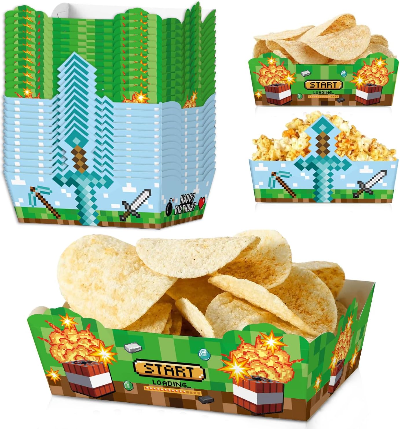24pcs Games Themed Paper Food Trays for Birthday Party Supplies Kids Birthday Party Decorations Favors