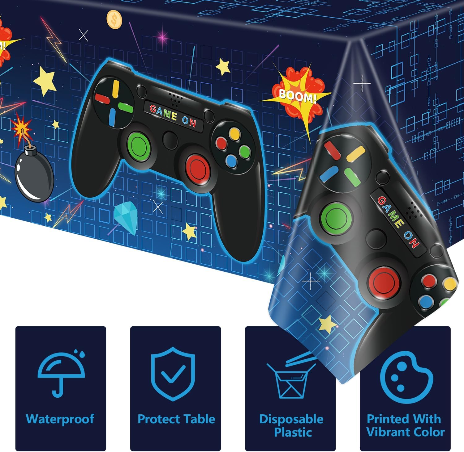 Good Quality: Made of waterproof plastic PE, non-toxic, lightweight and portable. The cute game tablecloth is splash-proof and easy to wipe and clean if there are milk, juice, or oil spills. Sturdy and non-tear-resistant, these birthday party game theme table cloths will keep your table protected against scratches and stains. Also, the plastic tablecloth can be easily folded and carried.