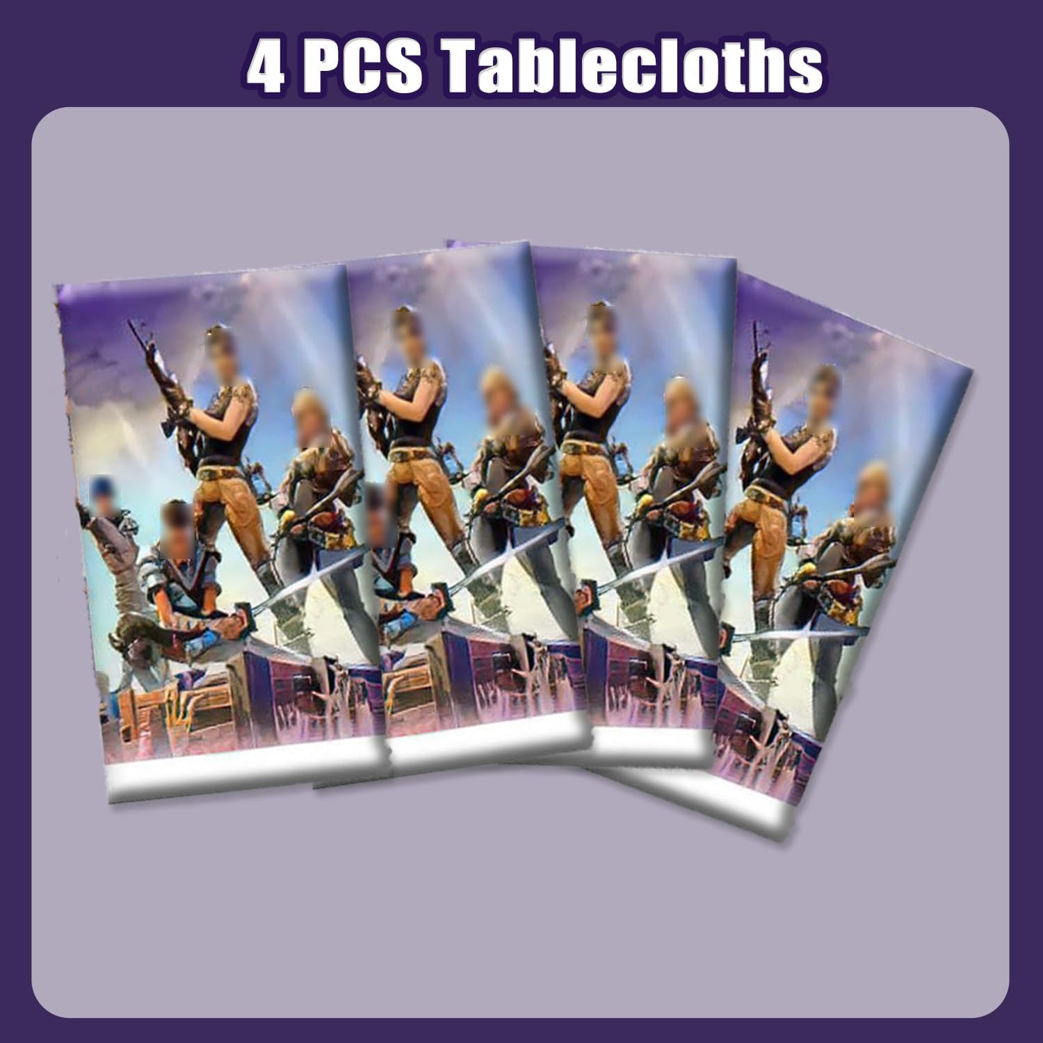 4 pcs Video Games Party Supplies Rectangular Tablecloth – Stylish Cartoon Table Covers for Game Celebration Birthday Decorations Party Supplies