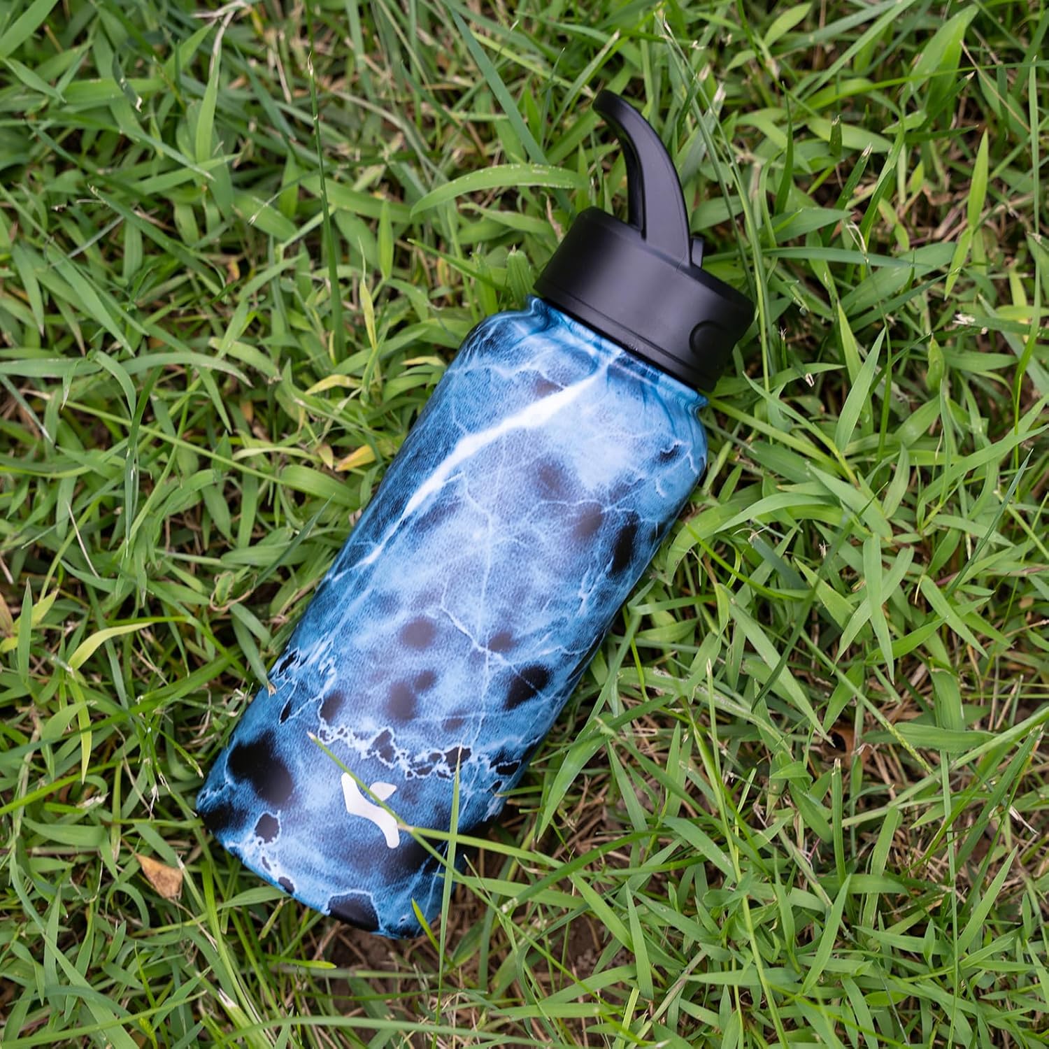 40oz Insulated Water Bottle Stainless Steel Sport Bottles with 3 Lids,Marble Ocean