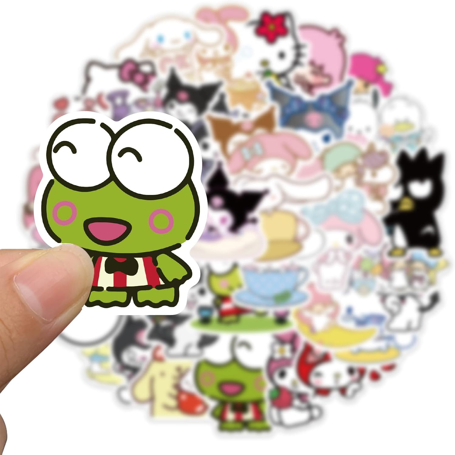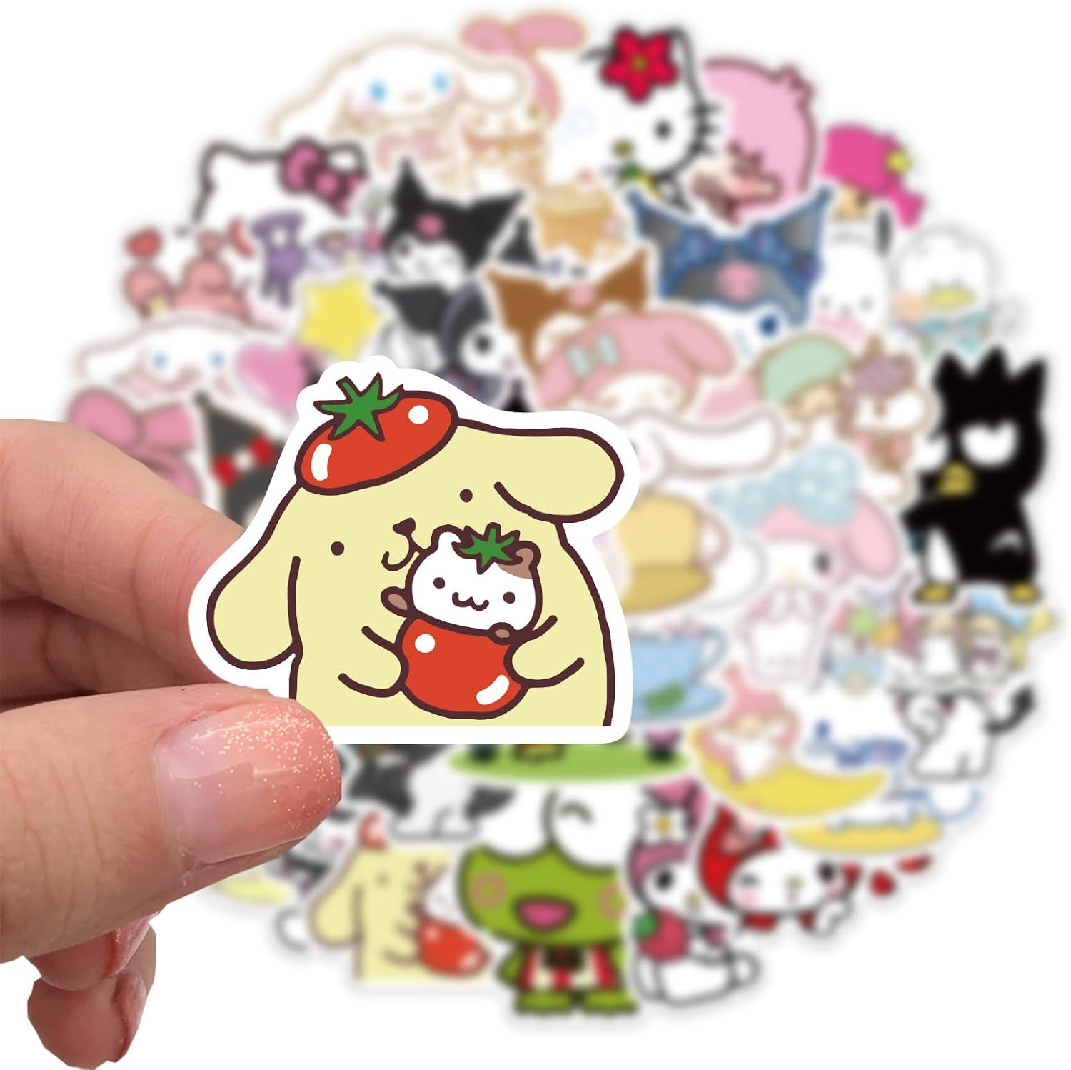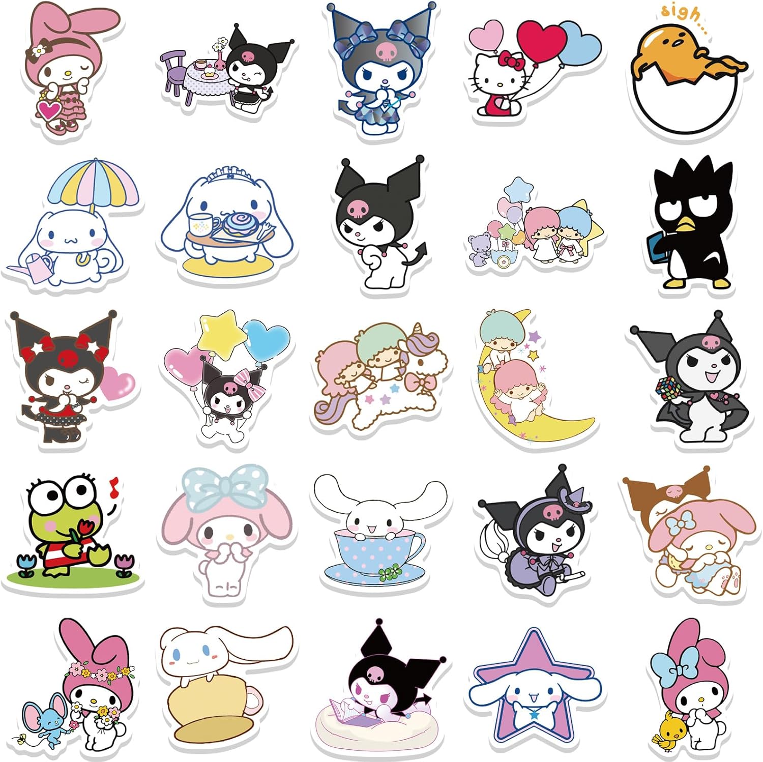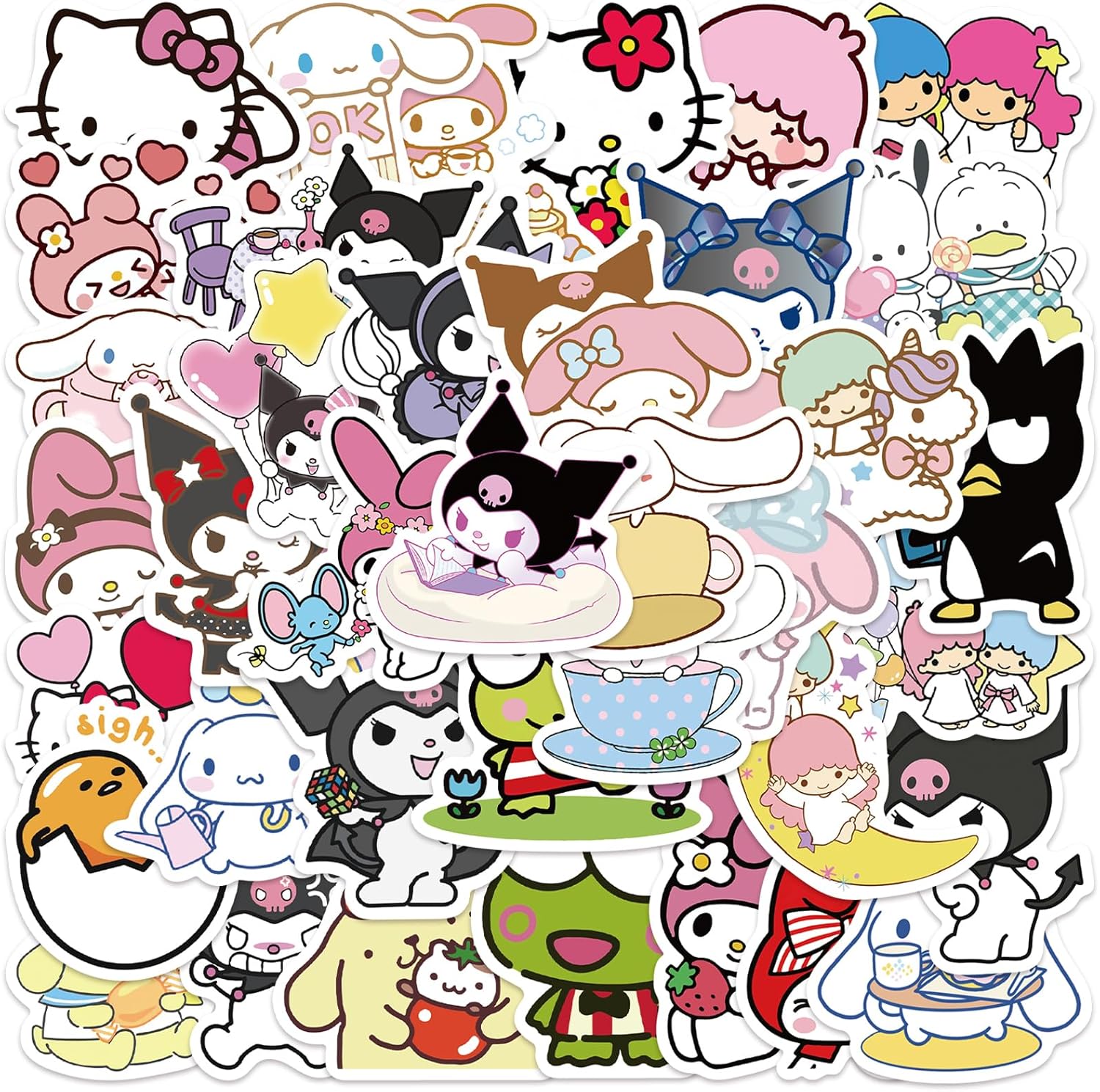 50pcs Cute Sanrio Cartoon Stickers, Kawaii Hellokitty Mymelody Kuromi Cartoon Waterproof Vinyl Decal for Girl Teen Kids Laptop, Travel Case, Phone, Bike, Water Bottle, Guitar, Computer