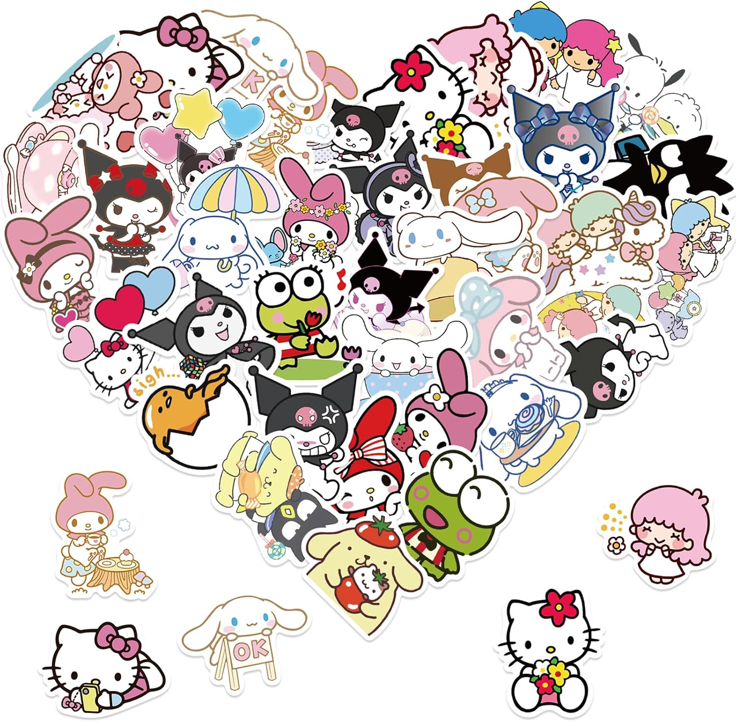 50pcs Cute Sanrio Cartoon Stickers, Kawaii Hellokitty Mymelody Kuromi Cartoon Waterproof Vinyl Decal for Girl Teen Kids Laptop, Travel Case, Phone, Bike, Water Bottle, Guitar, Computer