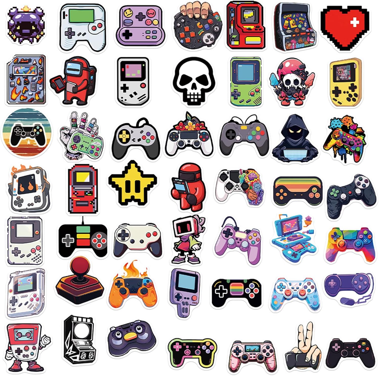50Pcs Play Game Stickers, Cool Cartoon Trendy Gamepad Waterproof Gaming Sticker for Teen Adult Water Bottle, Laptop, Skateboard, Bike, Phone, Computer, Travel Case (Game), Chroma