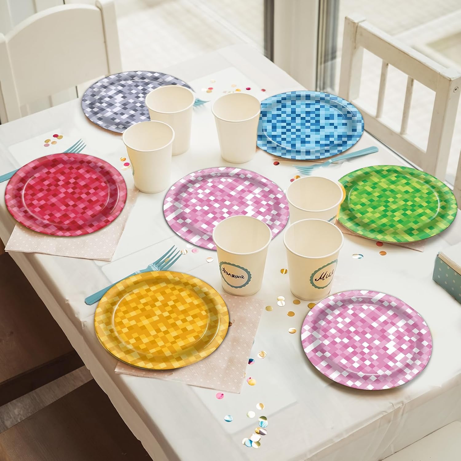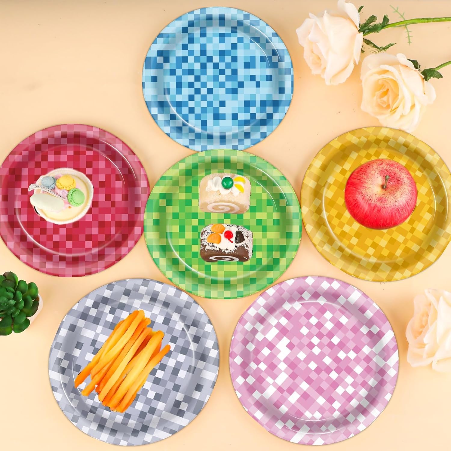 Packing content: These mining pixel party supplies include 60pcs 7 inch mini pixel party plates in 6 different colors, which suitable for your pixel themed party, baby shower or birthday party. Impress your guests with these video game party supplies that cute charms to any gathering.