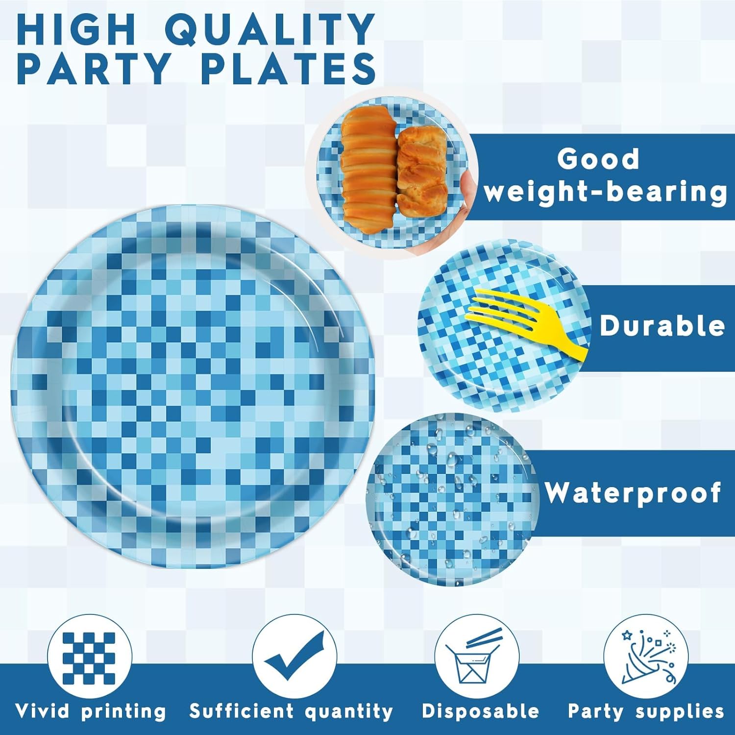 Premium quality: All of this mining pixel party tableware set is made of quality paper, no smell, heat-resistant, and durable. reliable. This pixel birthday party dinnerware is designed to hold up well to a variety of party foods without bending or leaking, making them the great choice at your pixel themed party.