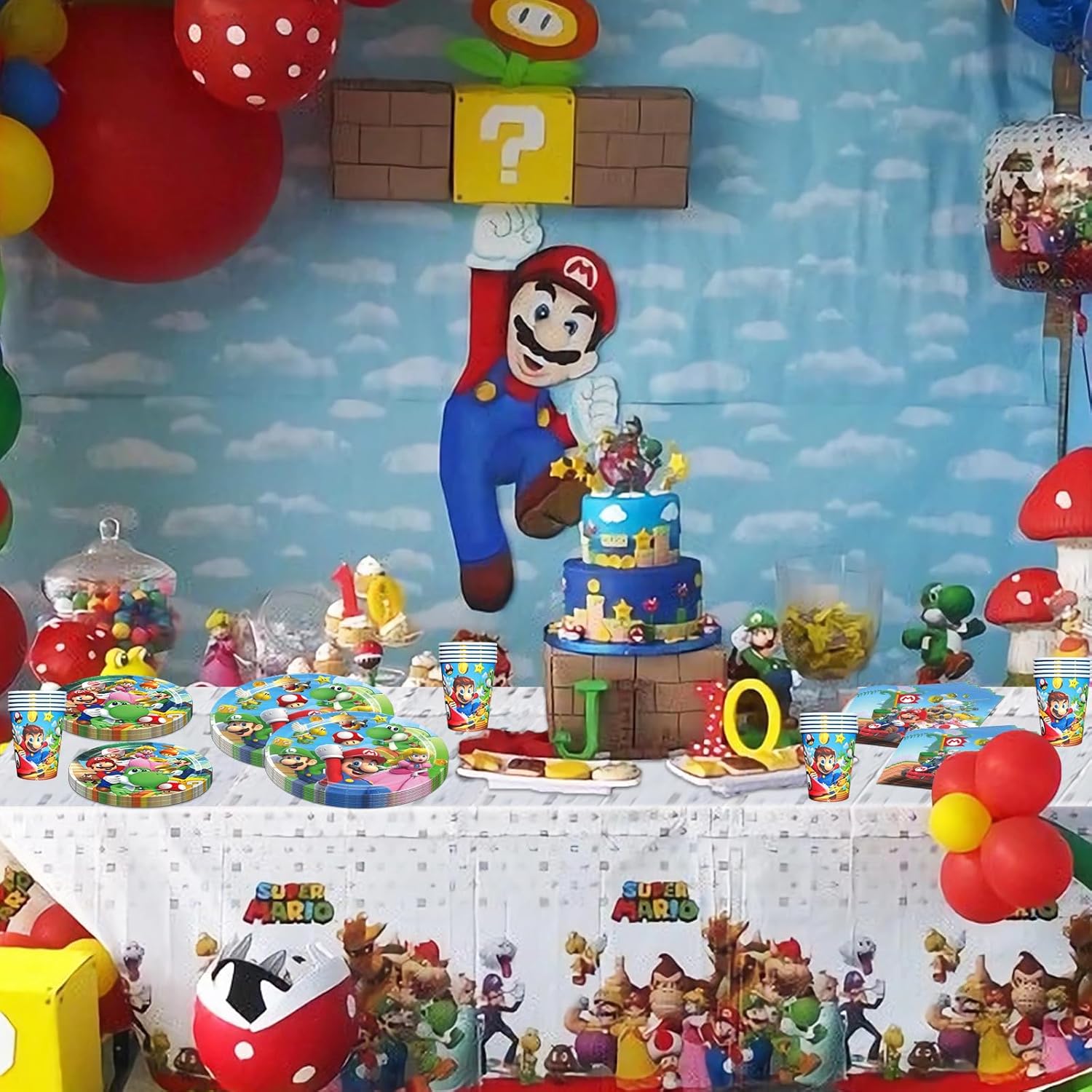 Safe Material: Mario dinner plates, napkins and cups are made of high quality paper, non-toxic, sturdy, not easily break, safe to use.