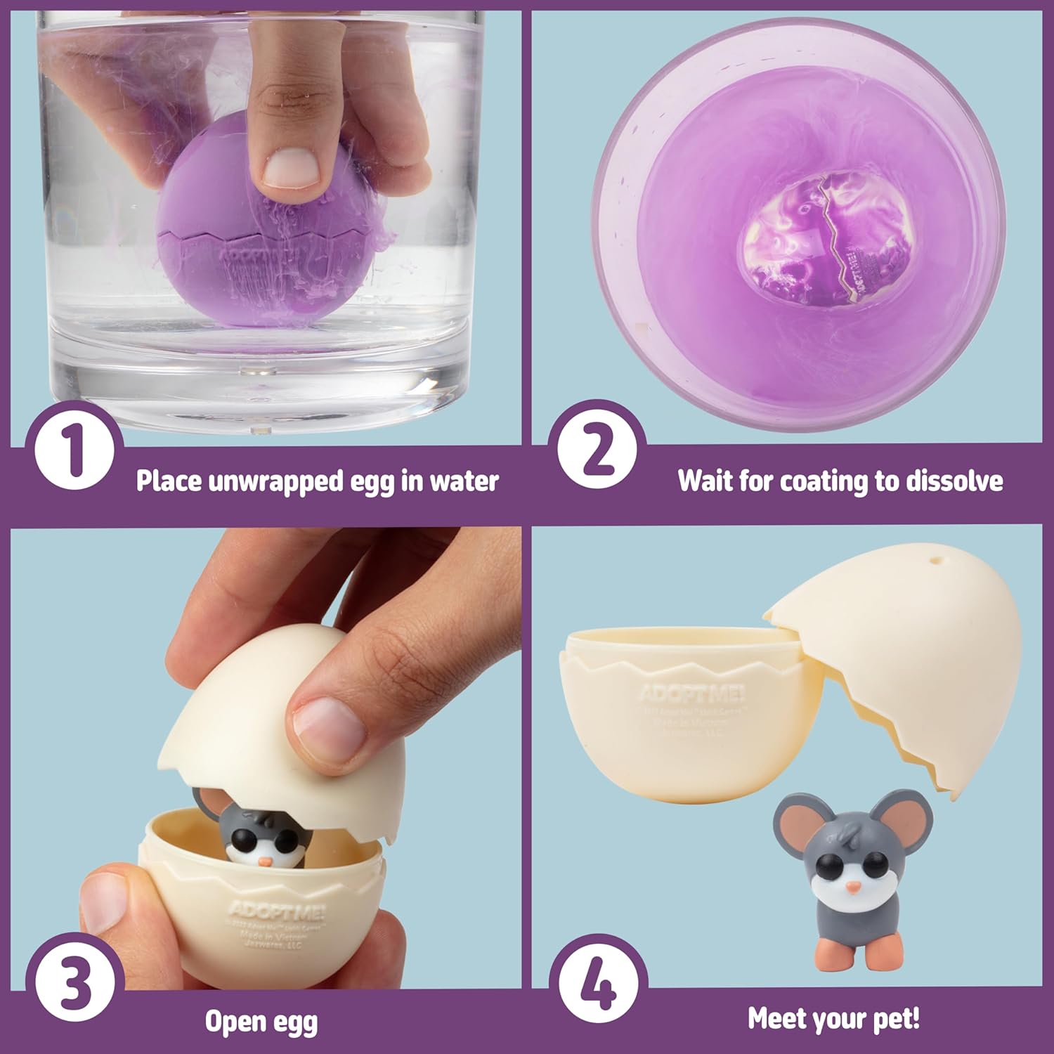 Build your Roblox world with the Adopt Me! Pets Mystery Egg based on the ultimate pet adoption Roblox game! Receive one random assorted egg with surprise pet inside! Each Adopt Me egg toy comes with a redeemable digital code to unlock an exclusive virtual item!
