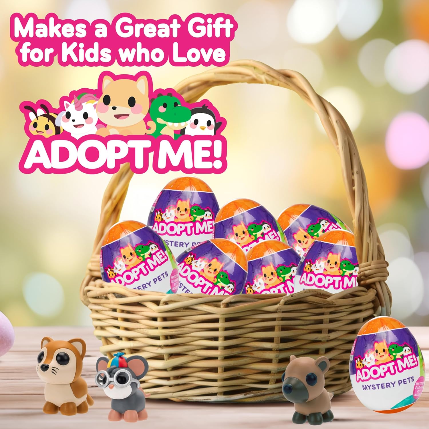 Build your Roblox world with the Adopt Me! Pets Mystery Egg collection based on the ultimate pet adoption Roblox game! Collect all 24 mystery pets! Each surprise egg holds a random miniature pet animal inside, including a Legendary Kitsune chase figure! Which pet will you adopt next? Each Adopt Me egg toy comes with a redeemable digital code to unlock an exclusive virtual item on Roblox! Makes a great gift for kids, boys, girls and teens who love the Roblox games! Perfect for Easter, Christmas, birthdays, party favors, stocking stuffers and more! Officially licensed Roblox merchandise. Includes 1 egg. Assorted styles may vary. Duplicates may occur. Ages 6 and up.