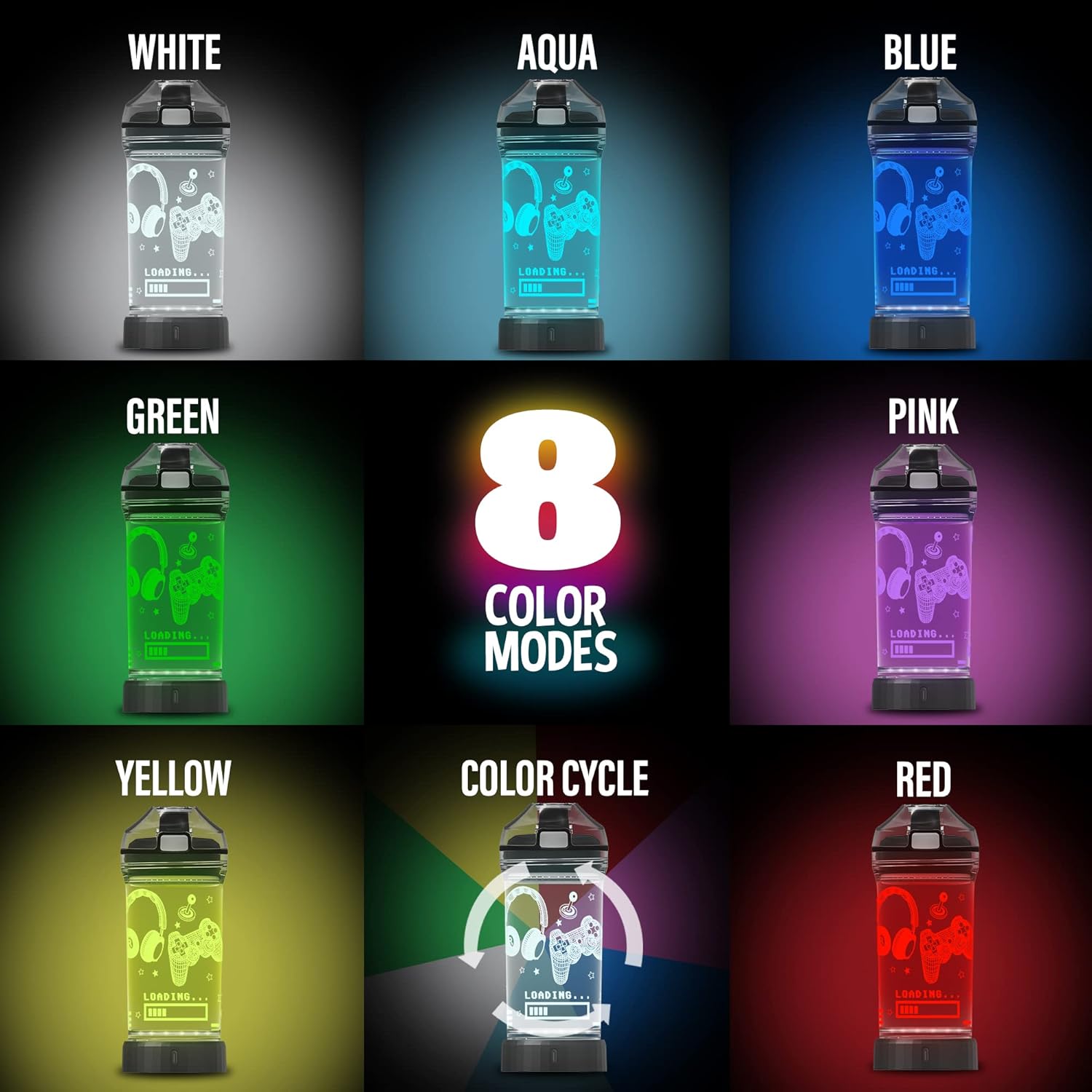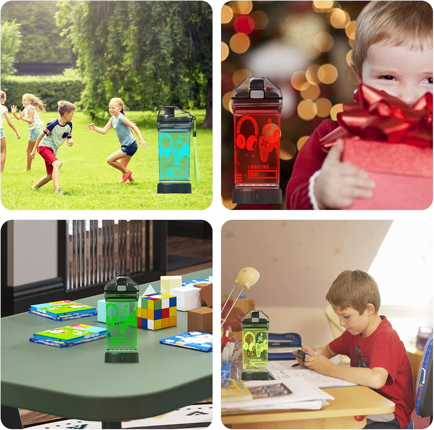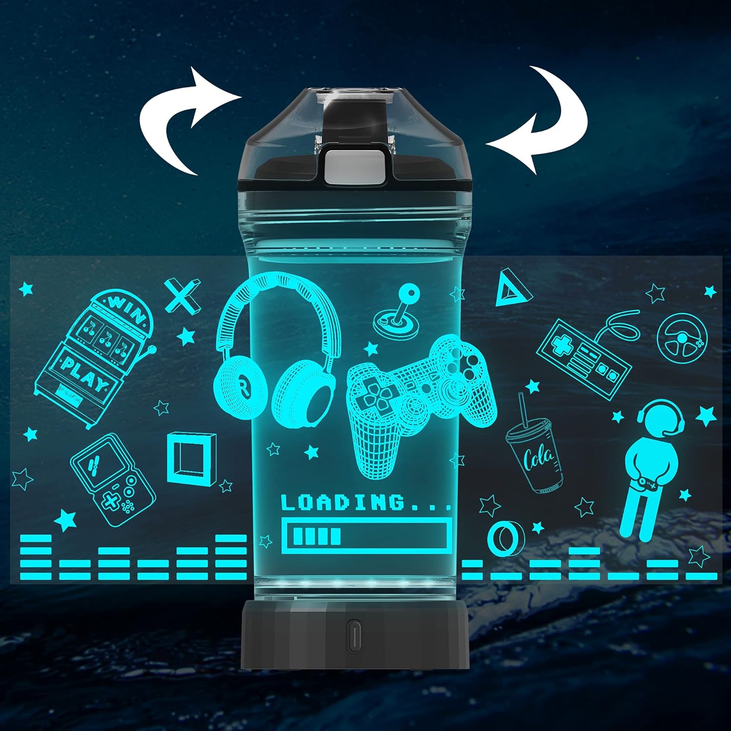 【Creative Design Water Bottle】Combine with 3D illusion effect with water bottle can motivate kids to drink water. The colorful cup comes with 7 color glowing light setting and color flashing mode, it also can as a night light for the game lover and has a sense of whimsy