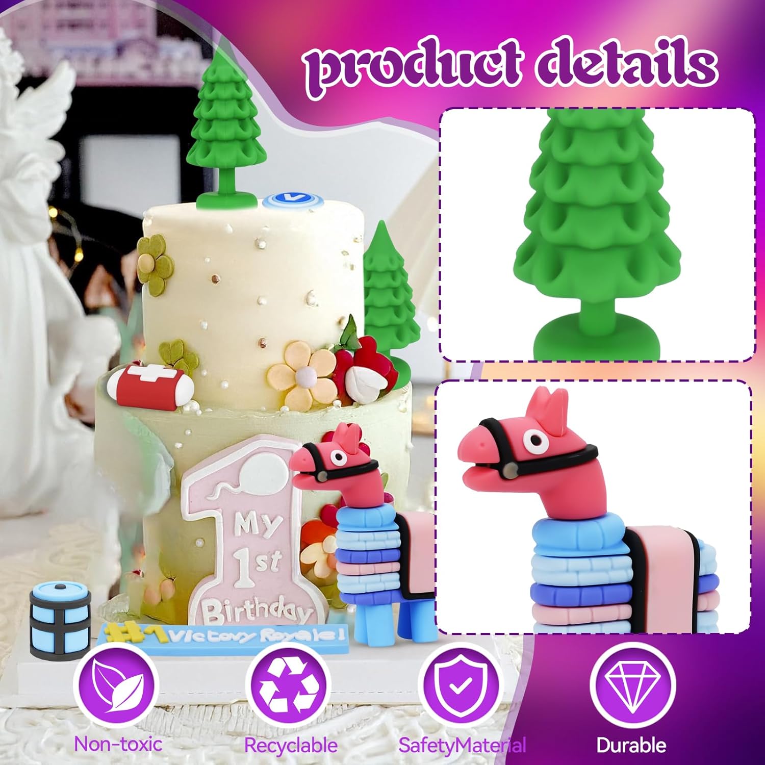 Each decoration is designed to bring your cake to the center of the video game battlefield. From adorable camels that add a whimsical touch to vibrant victory celebration gestures, these decorations will catch the eye of every player.