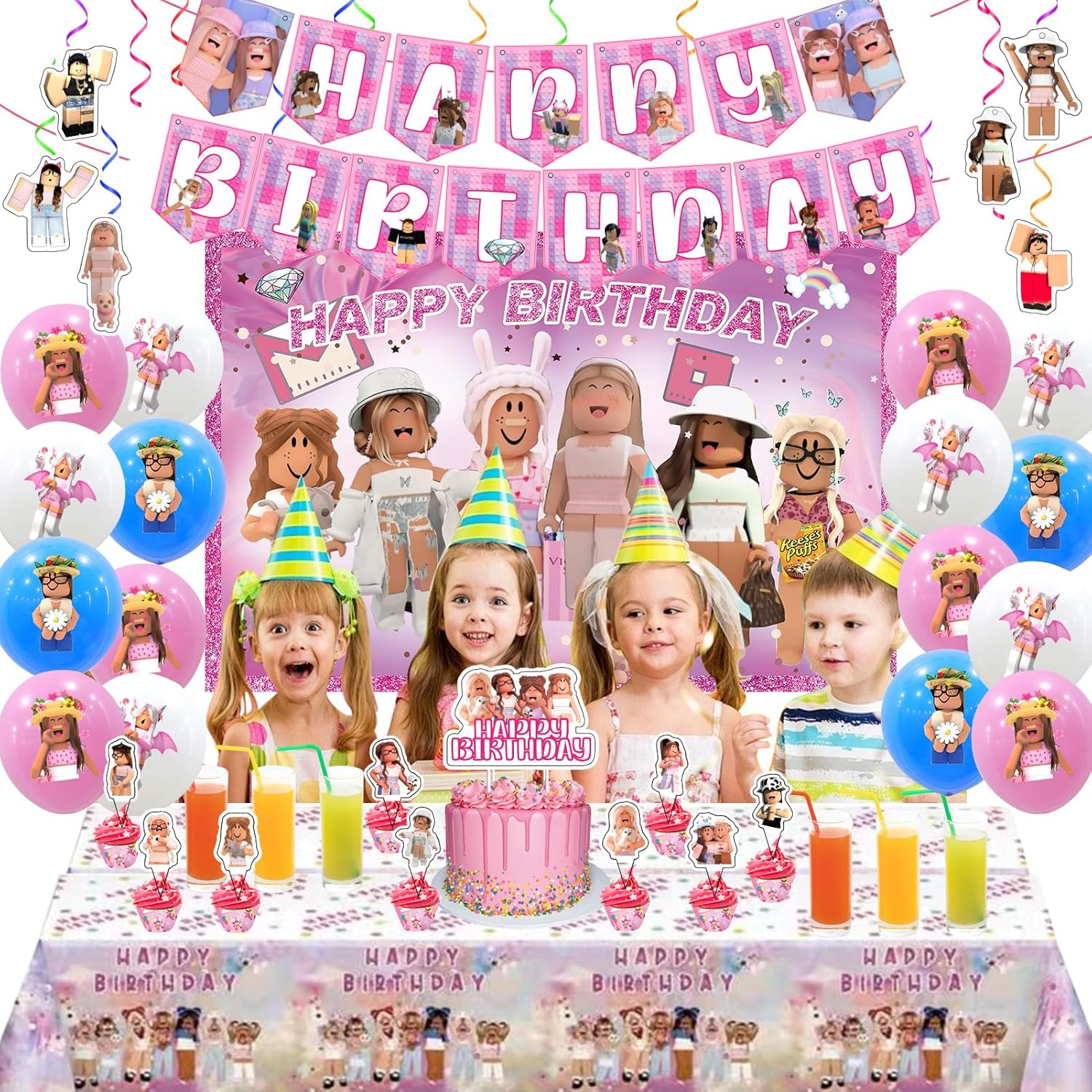 Birthday Party Decorations – Theme Children’s Party Supplies Included Happy Birthday Banner, Backdrop, Hanging Swirls, Tablecloth, Cupcake Cake Toppers, Latex Balloons