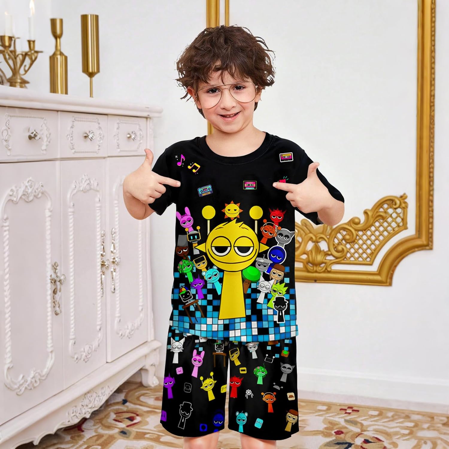 Boys Kids Short Set T-shirts Pants 2Pcs Outfits Casual Tee Shirt Clothes for 5-12 Year