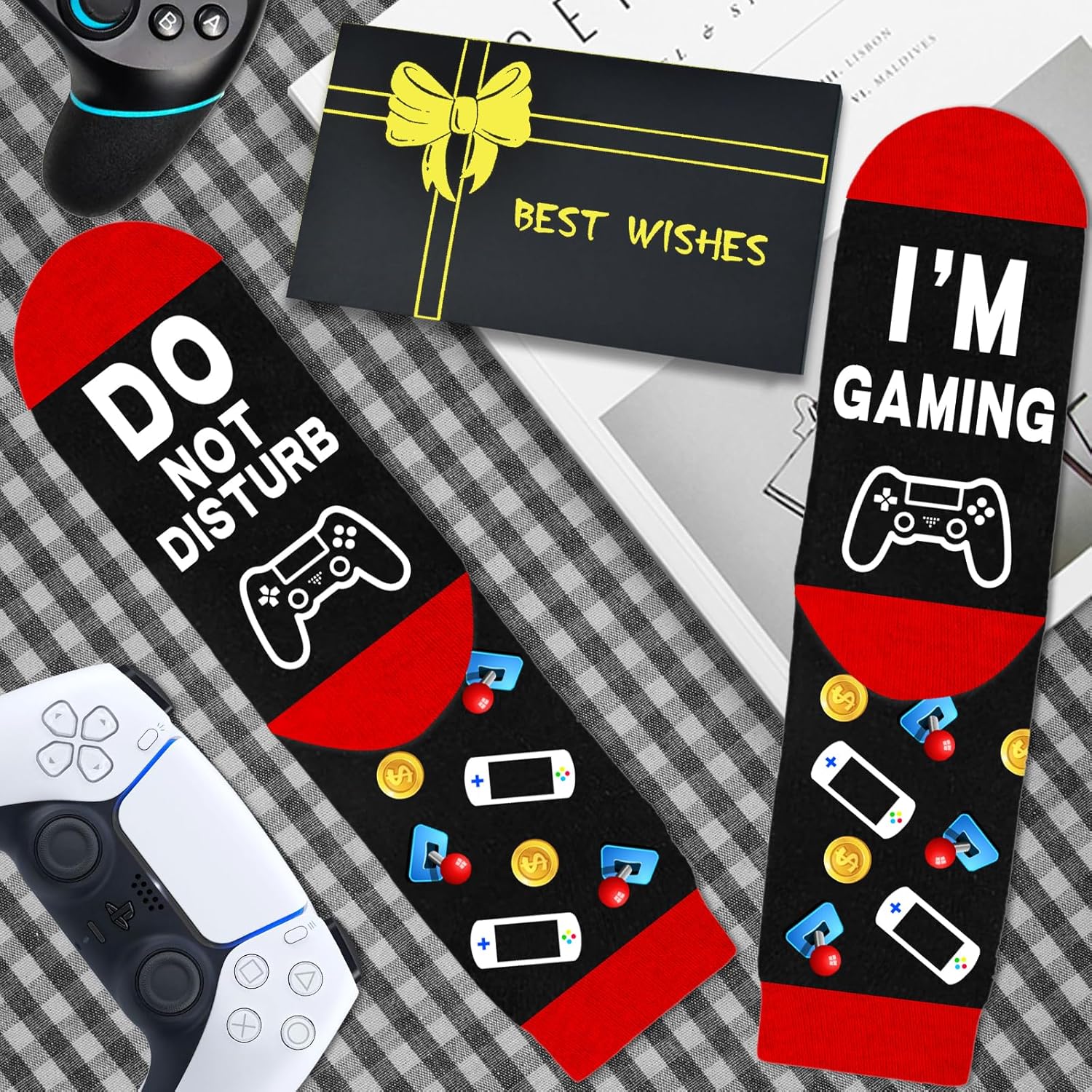 Dealswin Birthday Gifts for Teen Boys, Easter Basket Stuffers Do Not Disturb I’m Gaming Socks Funny Gamer Gifts for Men