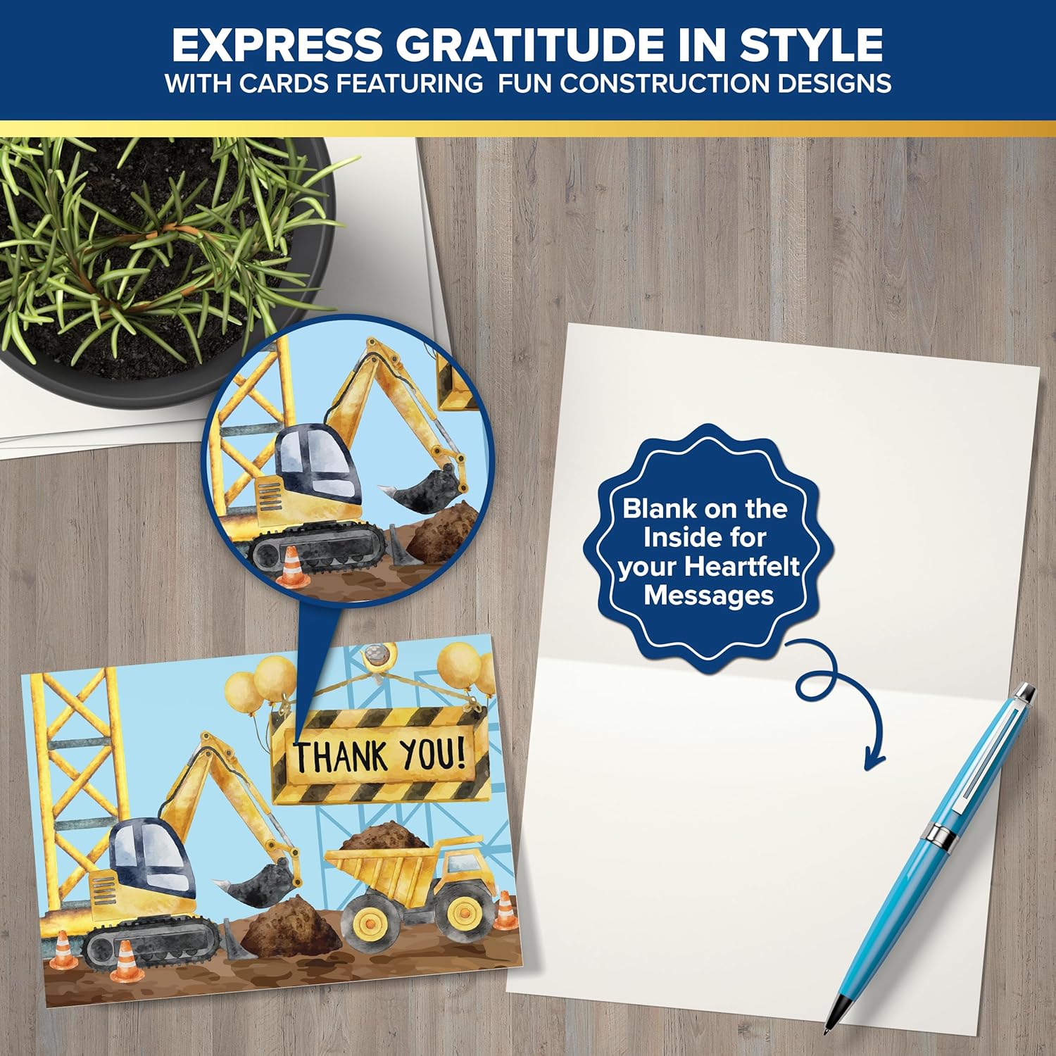 SEND A HEAVY-DUTY THANK YOU – Delight your loved ones with 6x4in birthday thank you cards kids that feature bold construction designs. These kid thank you cards are blank on the inside, giving you plenty of room for your personal message.