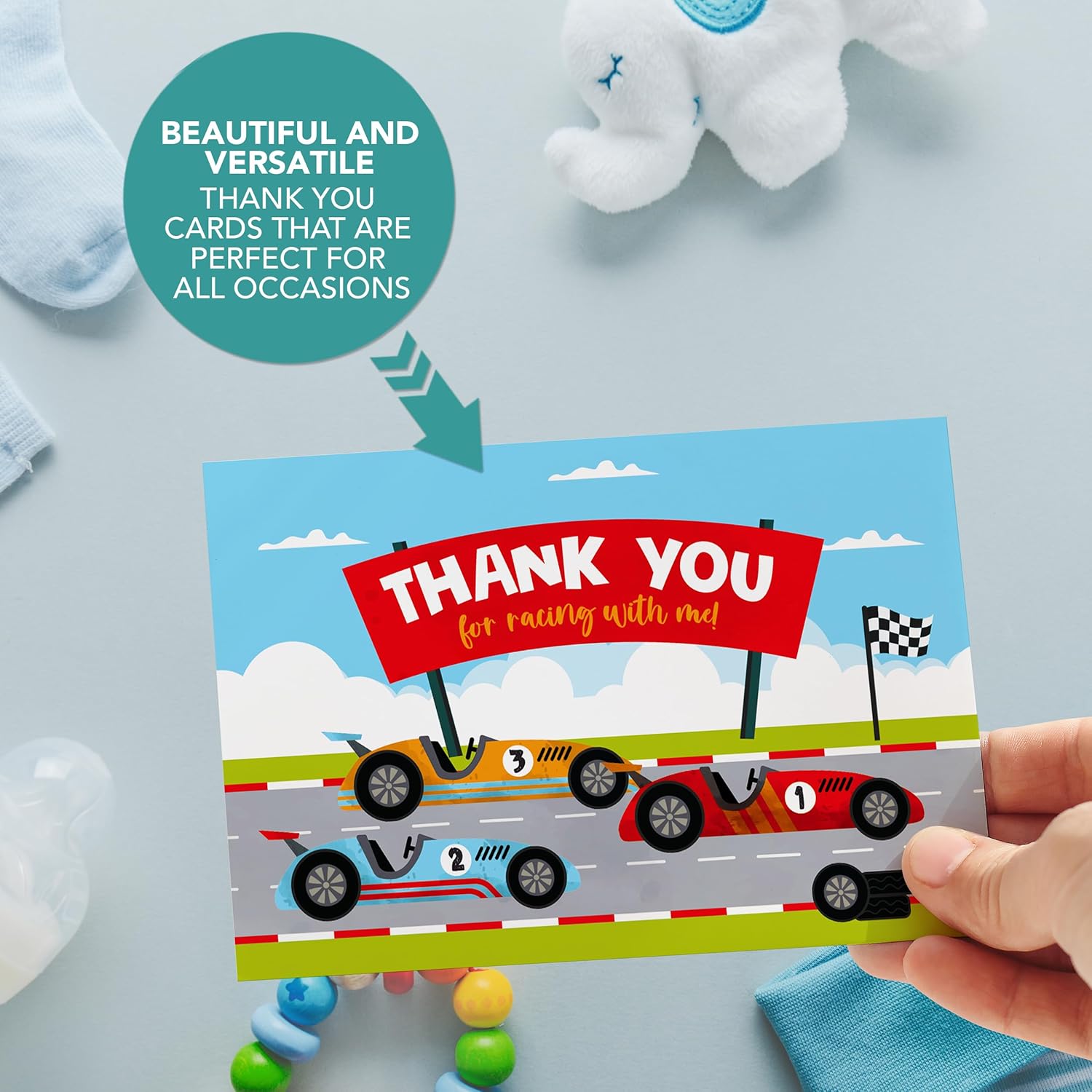 Decorably 24 Pack 6x4in Race Car Thank You Cards with Envelopes and Stickers, 8 Adorable Designs Car Themed Thank You Cards, Blank Inside – Kid’s Party, Birthday