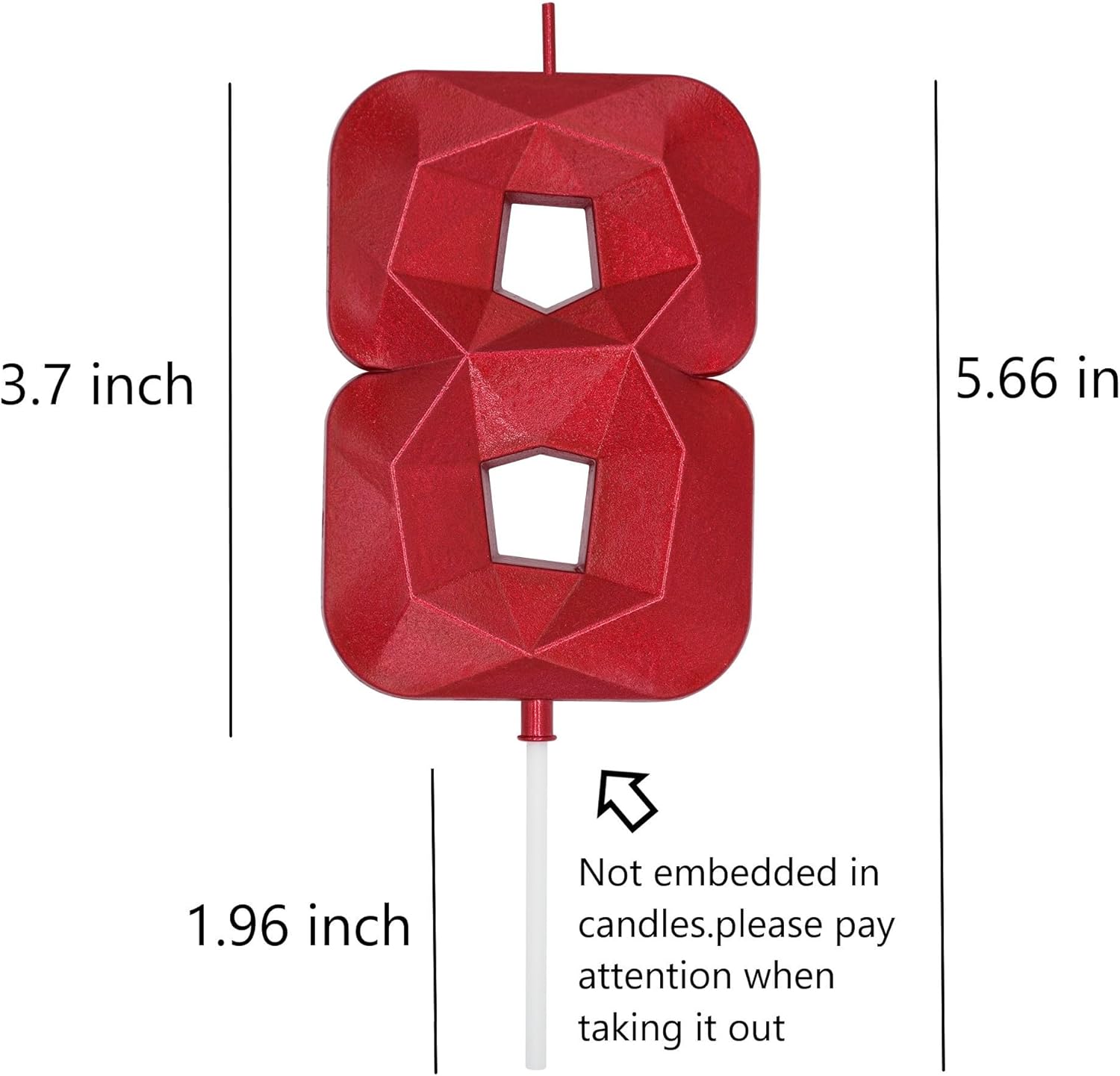 DERVENTA Birthday Candles Big Numbers 3D Red 3.7 inch Party Cake Topper 1 Piece (Number 8 Red)
