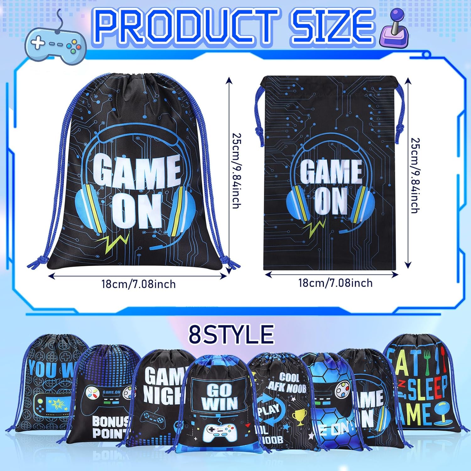 Video Game Party Goodie Bags Set: the package include 16 pieces video game party drawstring bags which have 8 different styles; They can well meet your needs of packing gifts and decorating gaming birthday party; Making every kid and guest have their video game bag
