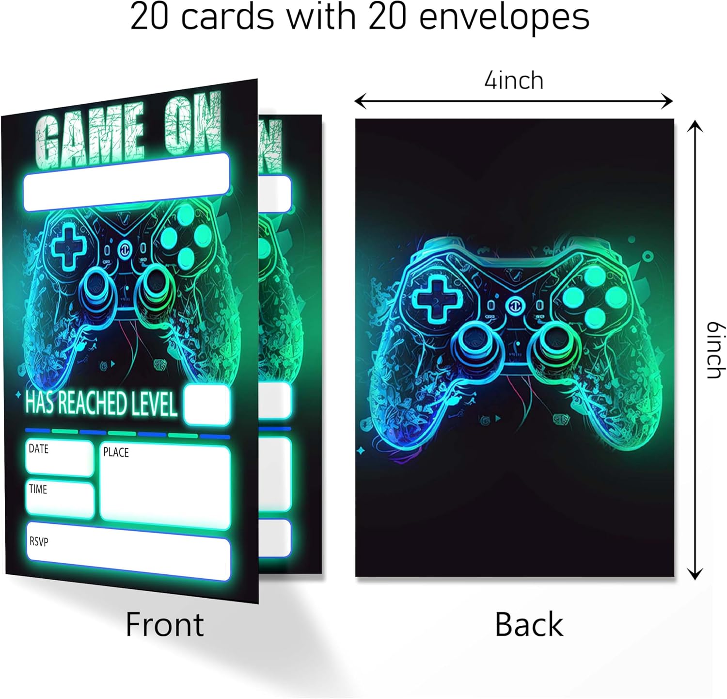 Gamer Birthday Invitations, Video Game Birthday Party, Gaming Party Decorations, Birthday Party Invitations For Boys Girls, Kids Birthday Invitations, 20 Cards with 20 Envelopes.(115)