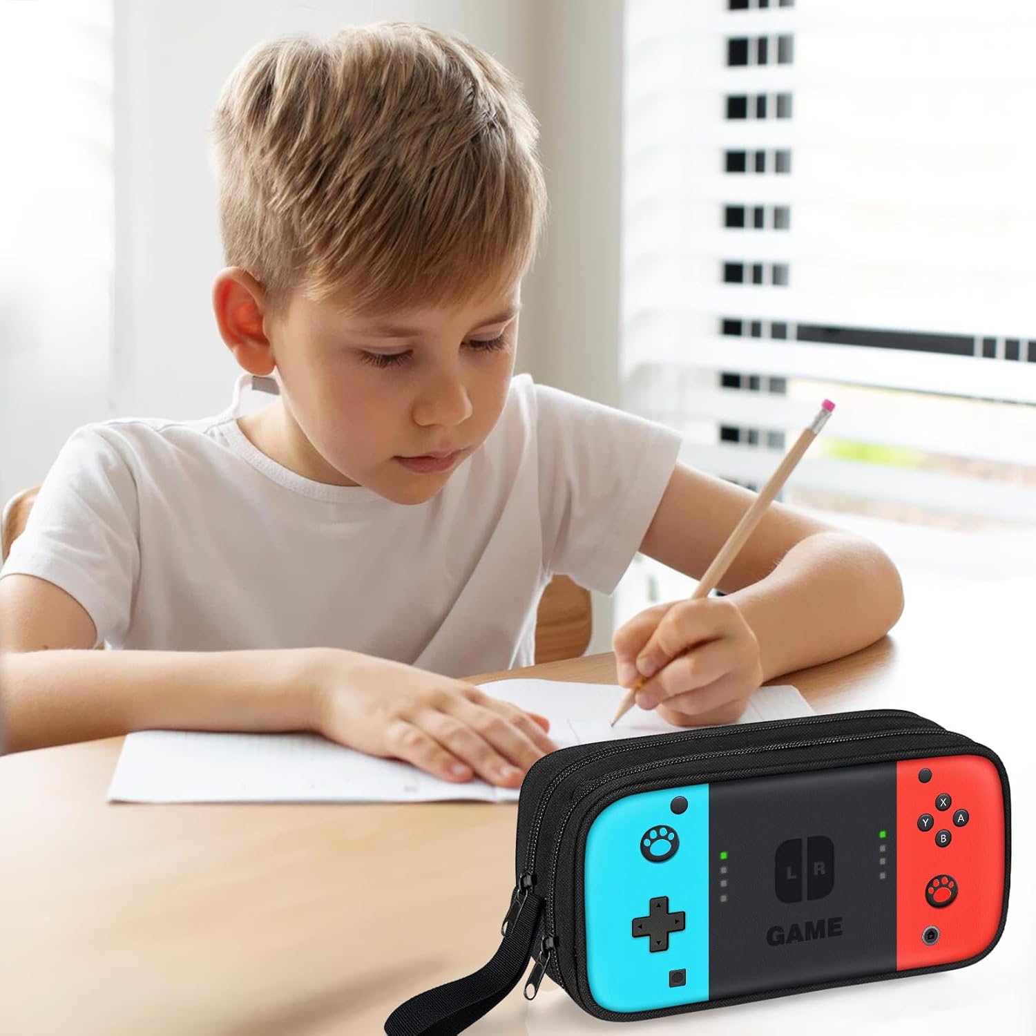 Gamer Pencil Case for Boys, Large Boys Pencil Pouch for Kids Teens School, Big Capacity Pen Box Pen Bag Organizer with 2 Compartments & Zipper