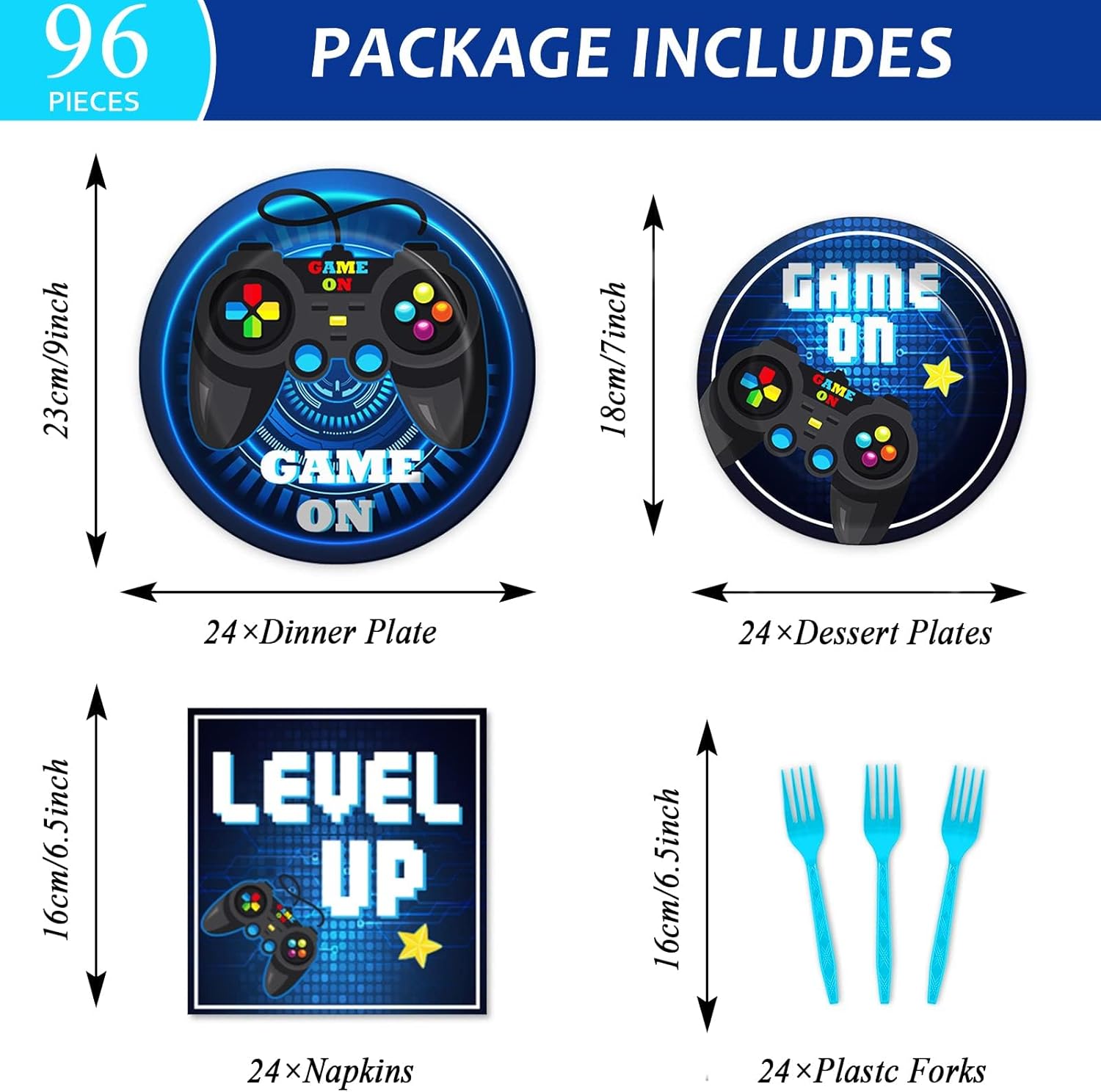 【Package Includes】 You will receive 24 pieces of video game party paper dinner plates of 9’’, 24 pieces of gaming paper plates of 7’’, 24 pieces of game napkins of 6.5’’ and 24 plastic blue forks for each set that can serve 24 guests.