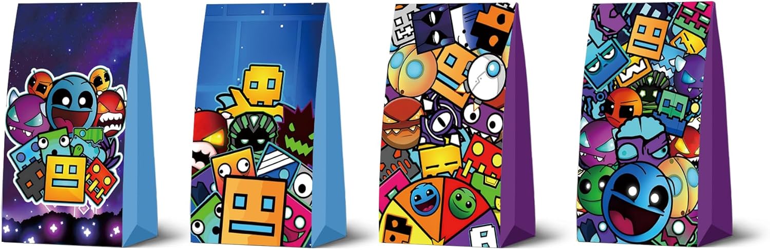 【Gift Bag Packaging】12pcs cartoon game party goodie bags with 4 different patterns enough for you to cartoon game birthday party candy or gift service.