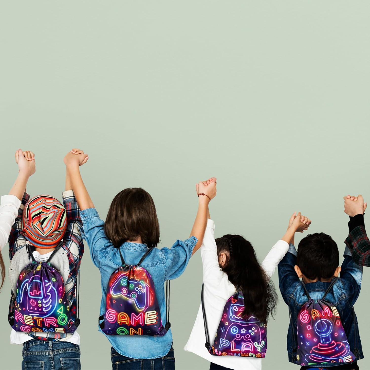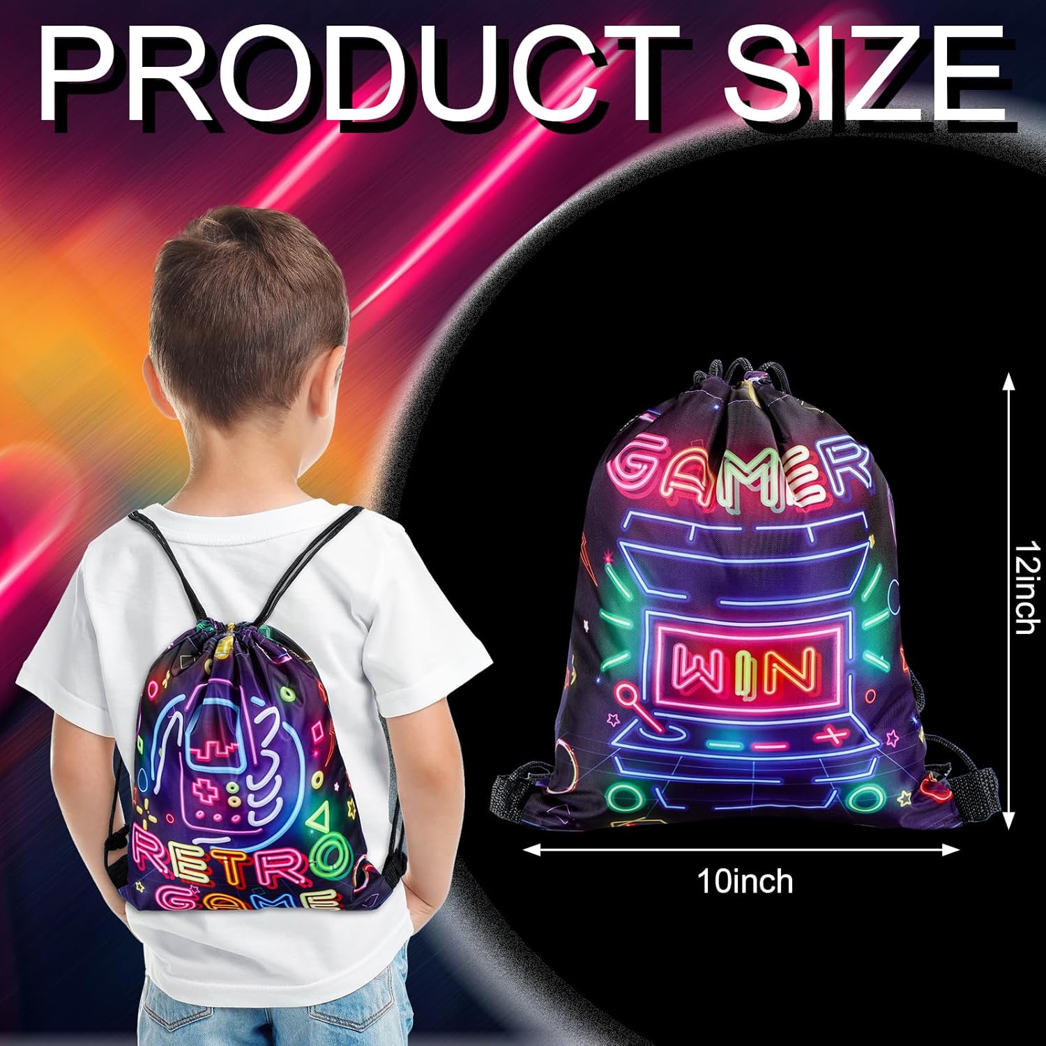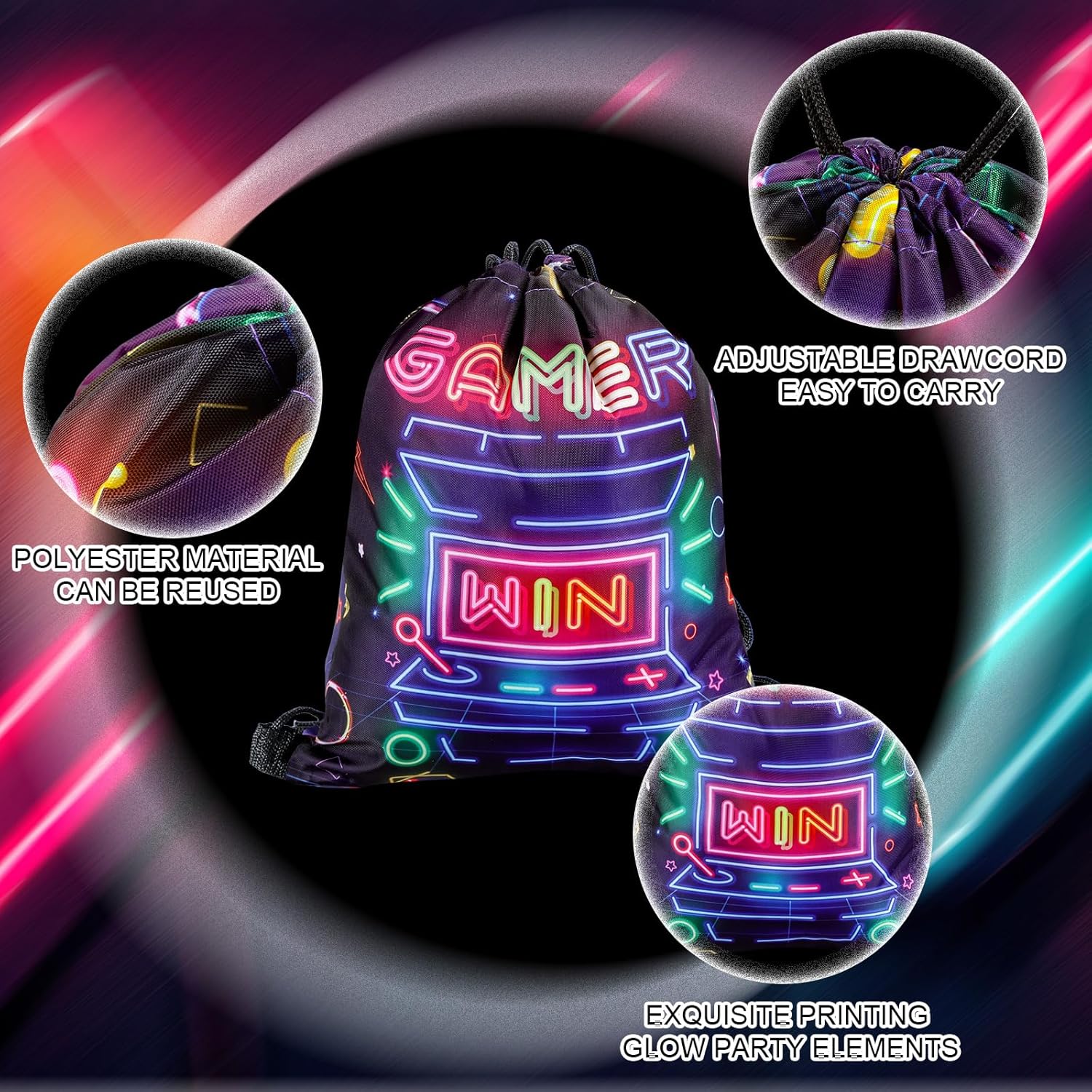 Quality Material Provides Durability and Comfort: our neon gaming party favors are crafted from quality polyester material; This ensures these bags can endure the stresses of party use and provide long lasting durability; Additionally, polyester also keeps comfort when they carry it, making the bags the ideal party accessory, which is sturdy, durable, safe, and not easy to deform or fade, supporting a long service time for you