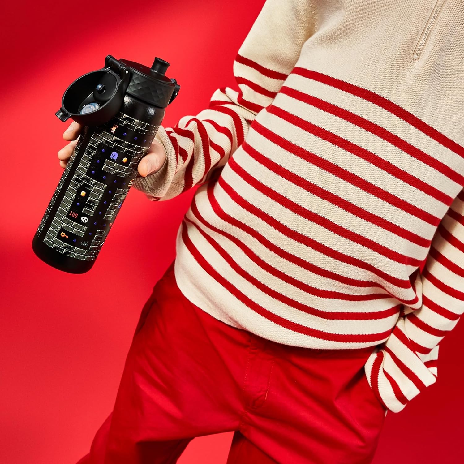 🎒 Perfectly portable, the slim design of this Ion8 bottle fits any cup holder or backpack. It’s the width of a can, making it your perfect travel buddy. Whether you’re in a car, at a picnic, or just lounging at home, this ‘Gaming’ design water bottle has you covered. Plus, the integrated carry handle is hidden in the cover, making it ready to go whenever you are.