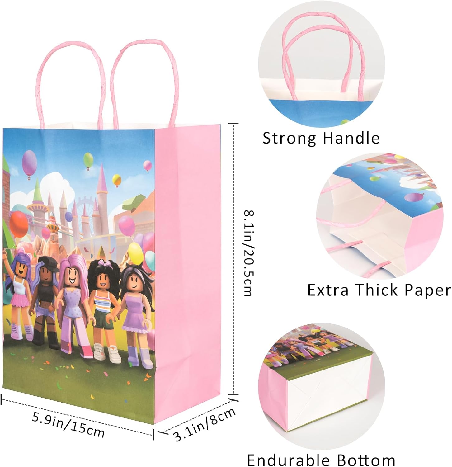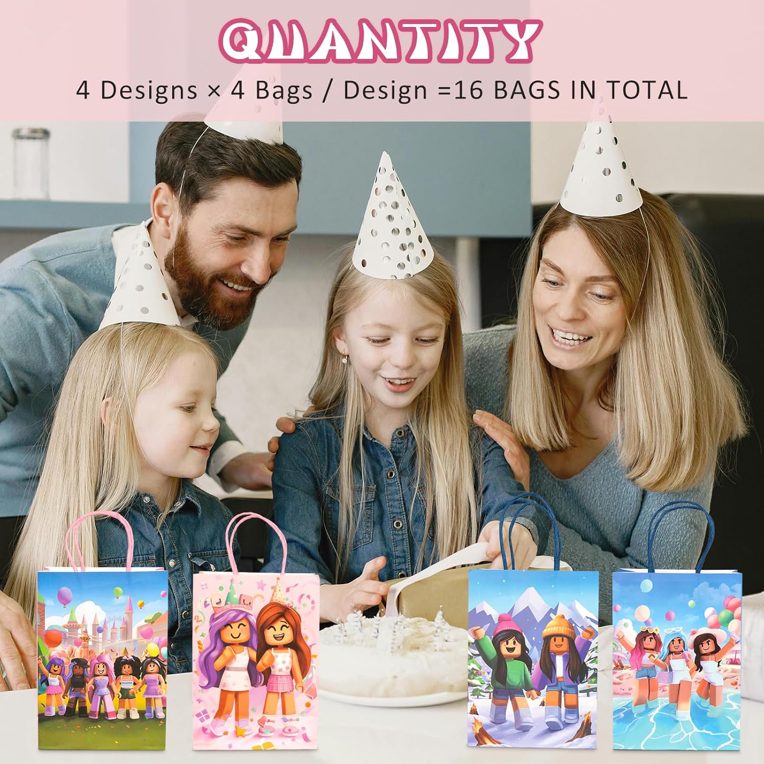 Kauai Sun 16PCS Game Theme Party Bags, Four Unique Designs Goodie Bags for Girls Boys, Kids Blocks Party Favors Supplies Candy Treat Loot Exchange Gift Bags, Sturdy Extra Thick