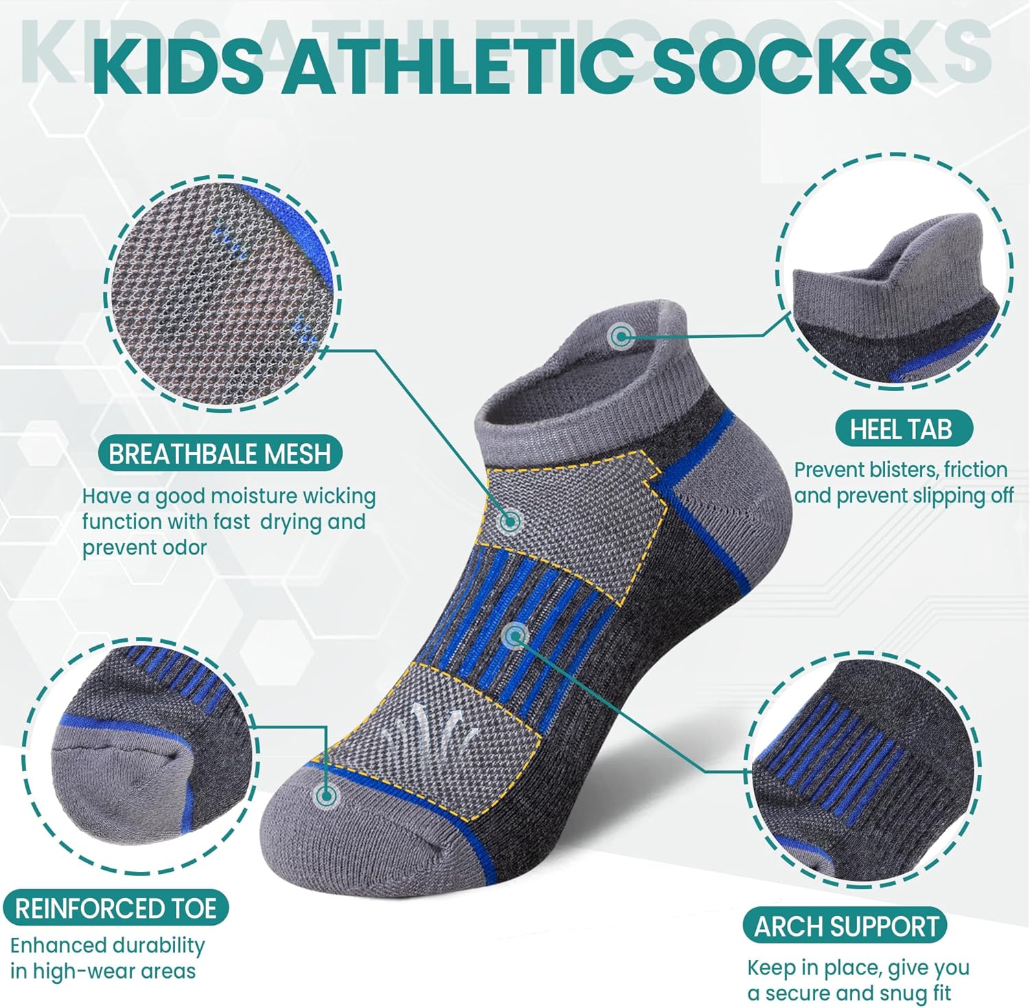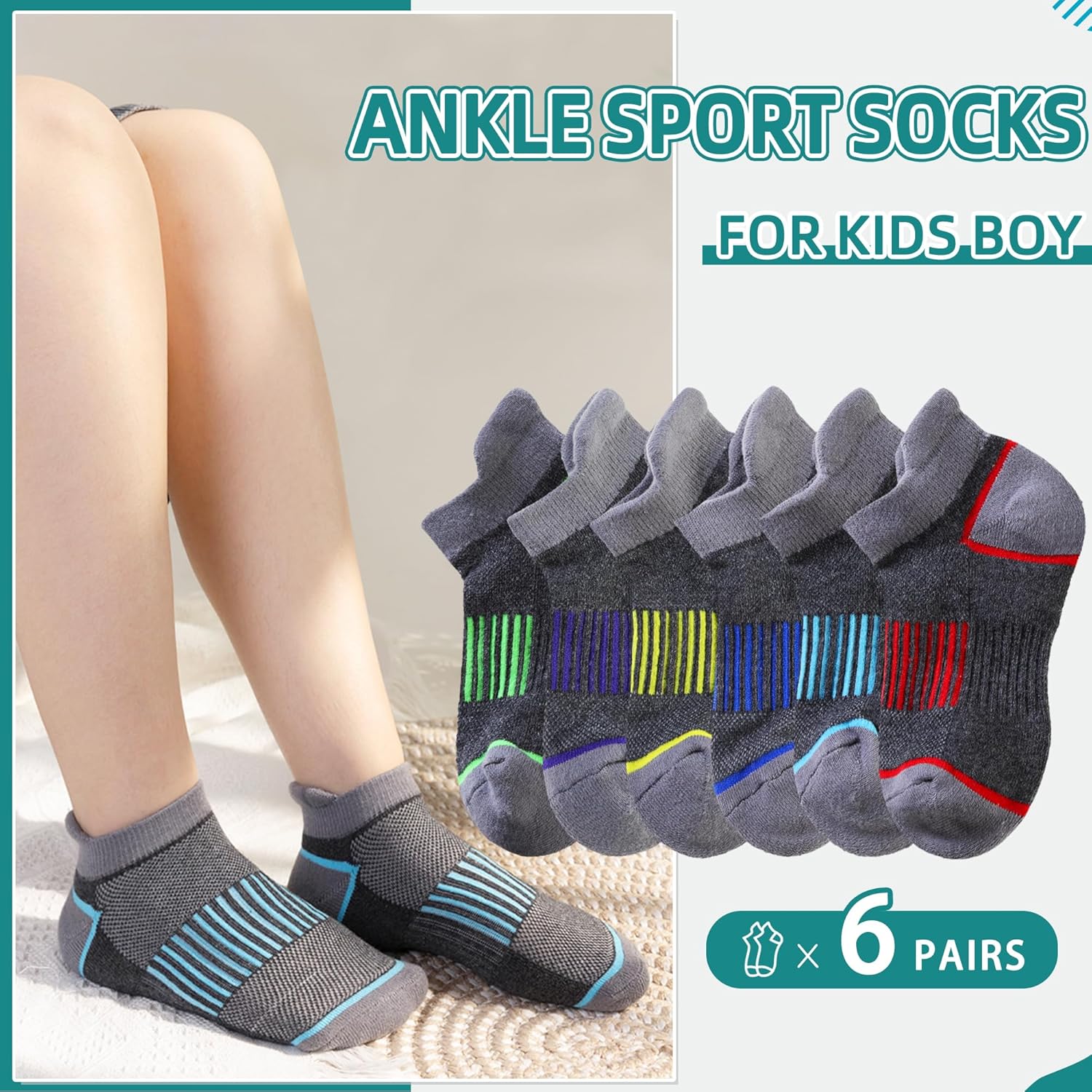 Kids Boys Ankle Socks Low Cut Athletic Cotton Sport Socks For Little Boys 6 Pairs