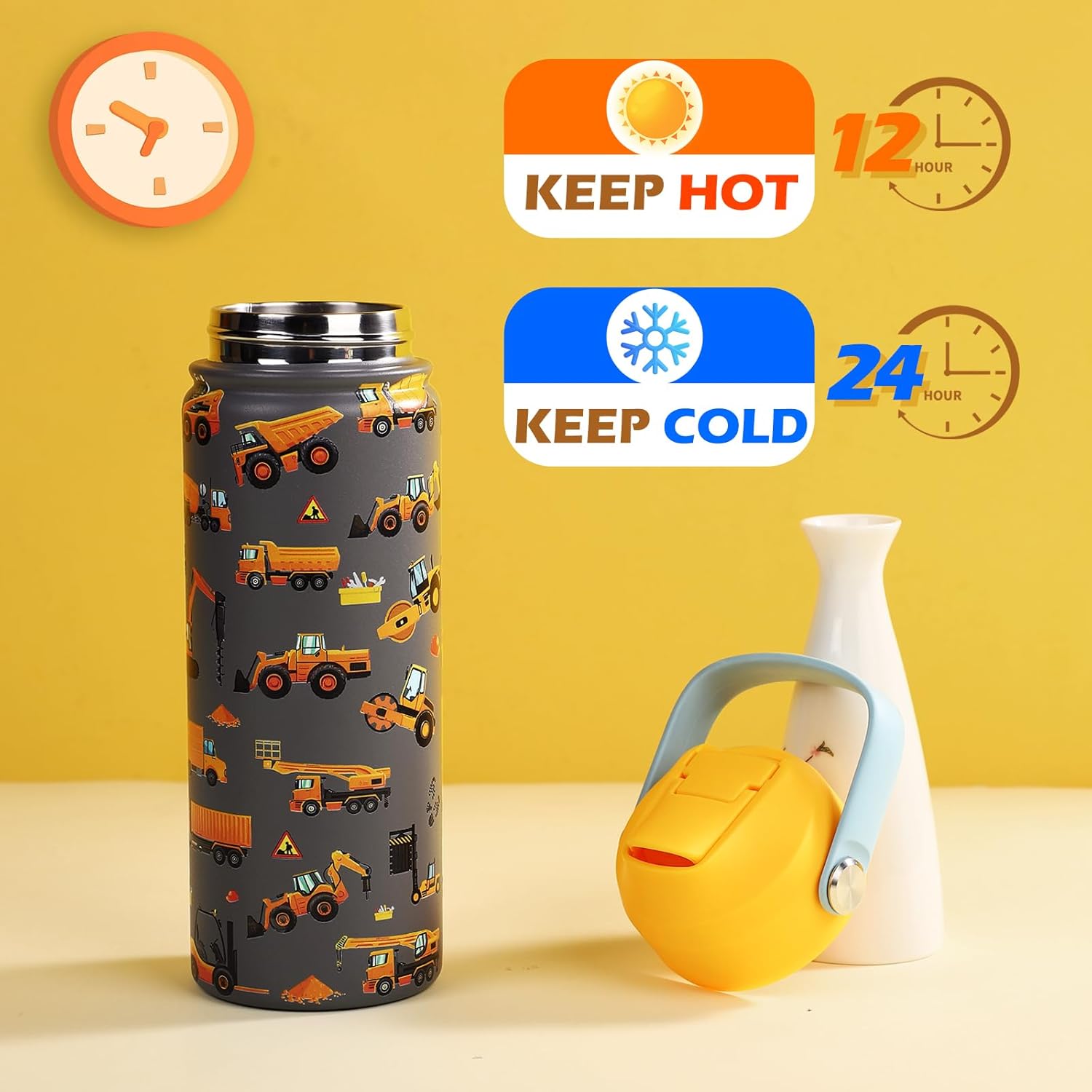 Child-Safe Materials: This insulated water bottle is made from high-quality 18/8 stainless steel and features BPA-free, food-safe, and non-toxic materials, making it a safe choice for kids