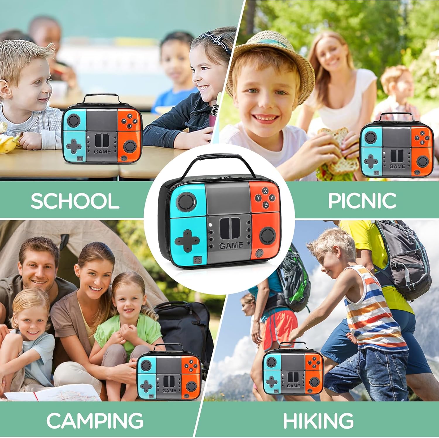 Kids Lunch Box, Game Boy Lunch Bag by 3D Printing, Thicker PU Thermal Insulated lunchbox With Inner Cutlery Mesh Bag, Waterproof And Portable Mini Cooler, Fits Easily in Backpack For Students