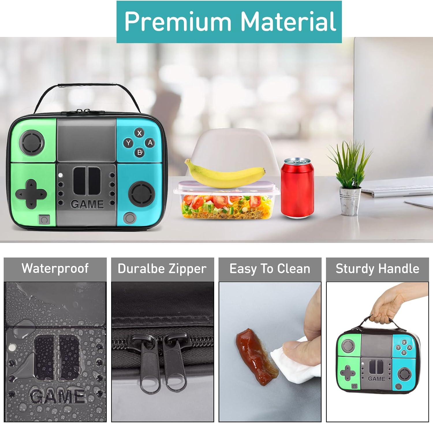 【Security & Premium Insulated】All game lunch bag are quality tested and made of premium leather fabric.The inner insulation layer is made of padded with extra-thick 5mm PE foam,and used thicken enduring gray insulated interior lining that keeps foods at the right temp inside.The inner insulation layer helps to keep the food cool or warm.Suitable for Age 4+ kids and On-The-Go Parents.