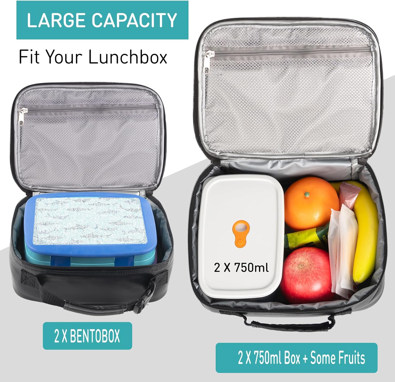 【Sufficient Storage Space】Lunch bag size:10.2”(L)x 3.9”(W)x7.5”(H).You can put ice pack in the lunch bag,the inner insulation layer helps retain warm and cold temp whole day to keeps your food fresh and delicious.Suitable for school students,working professionals,and anyone on the go!