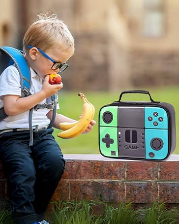 Kids Lunch Box,Boy Insulated Lunch Boxes Game Leather Lunch Bag for School,Thermal Meal Cooler Lunch Bags for Boys Girls Kids Toddler Teen