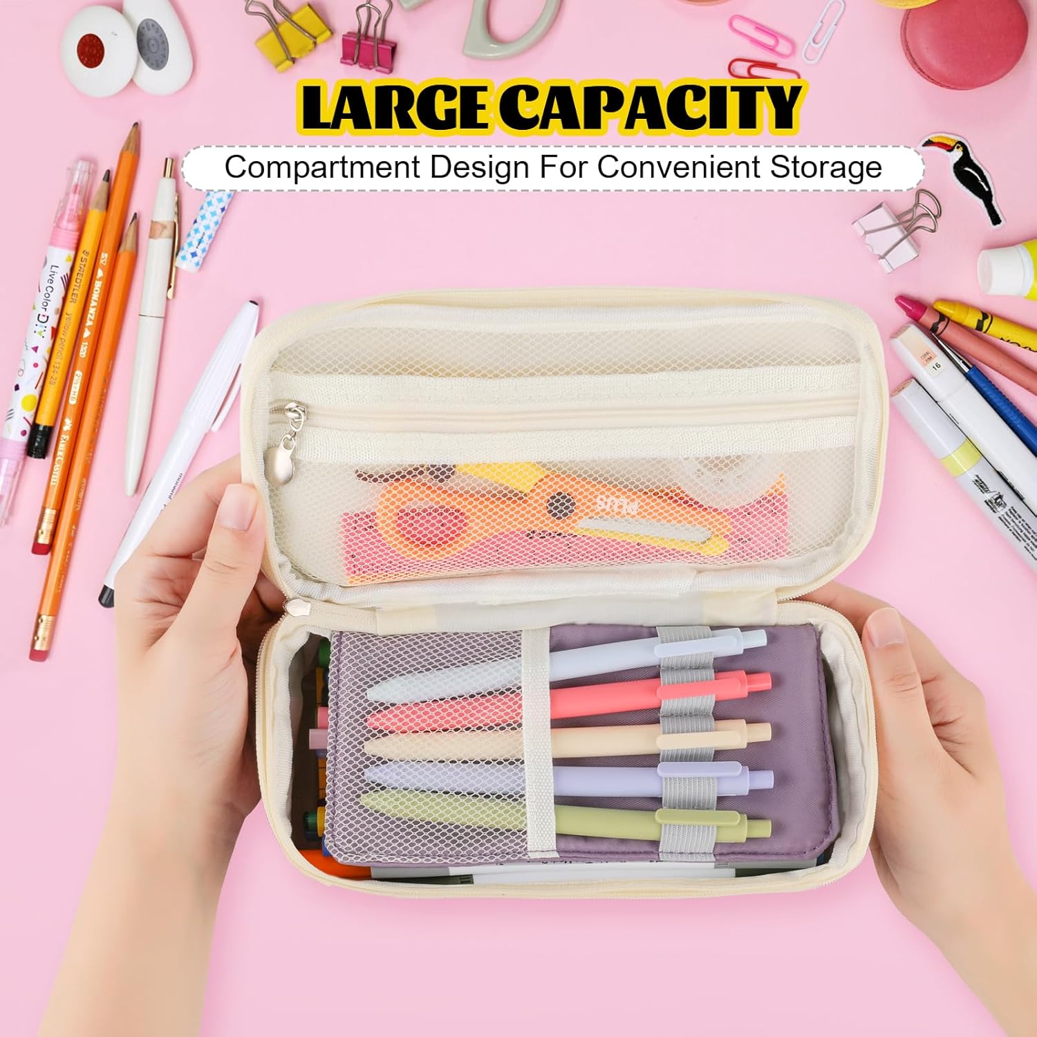 KISREL Pencil Case, Large Zipper Pencil Pouch, Big Capacity Pencil Case with Compartments,Cute Pencil Pouch for Kids, Teenagers, Boys, Girls, Adults(Purple)