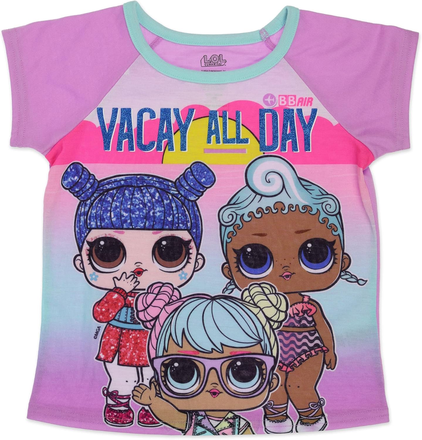 L.O.L Surprise 2 Piece Girls Pajama Set . These L.O.L Surprise pajamas will have you “Gliterally Dreaming” in “Glitter and Glam”! This set includes 1 L.O.L ” Glitterally Dreaming” Sleepwear shirt featuring your favorite L.O.L Surprise Dolls Queen Bee, MC Rocker and more!