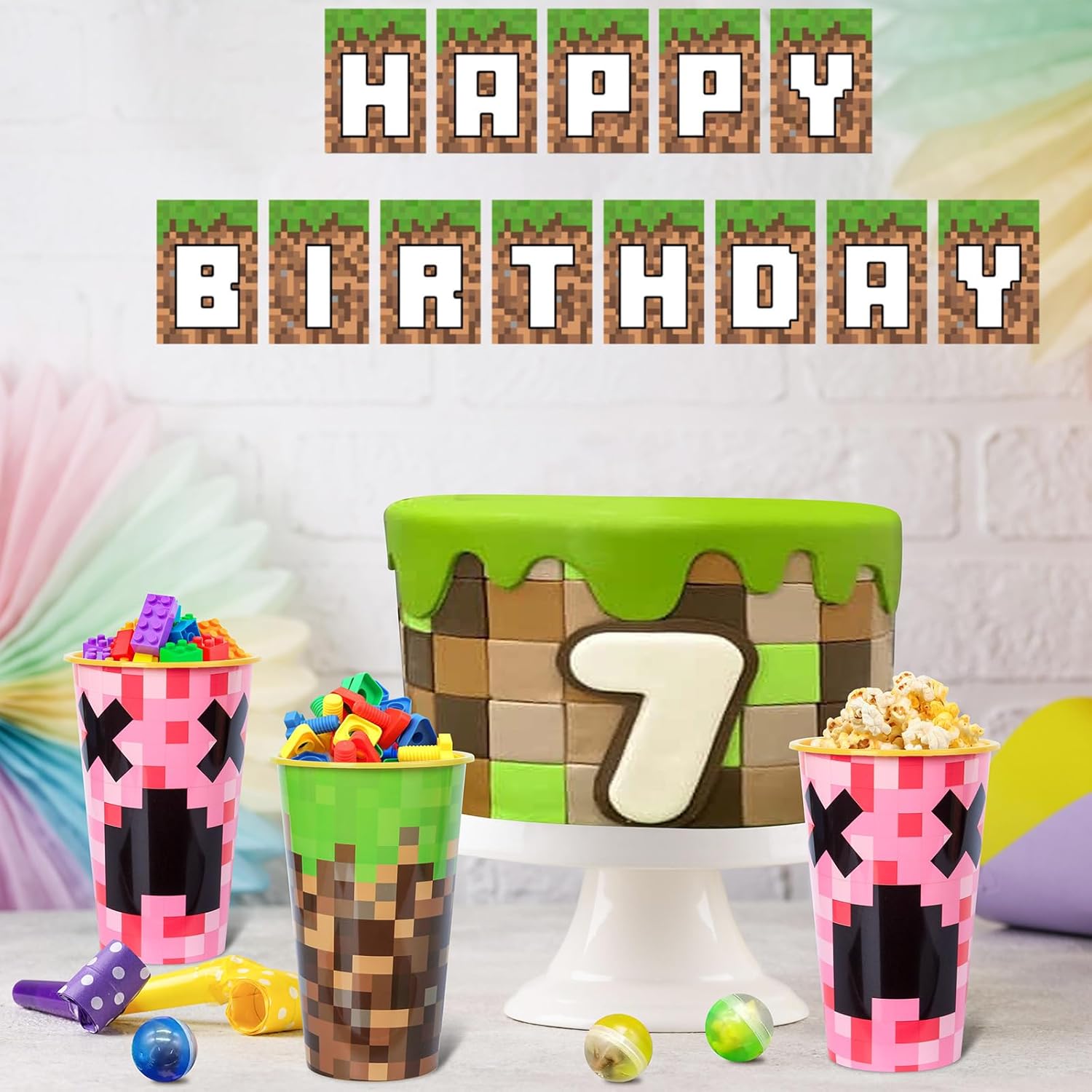 【Unique Pixel Miner Game-themed design】the pixel birthday reusable cups for parties are designed with pixel elements, with bright fresh color, meeting the theme of pixel party, which can create strong pixel theme atmosphere, deeply loved by people of any age.