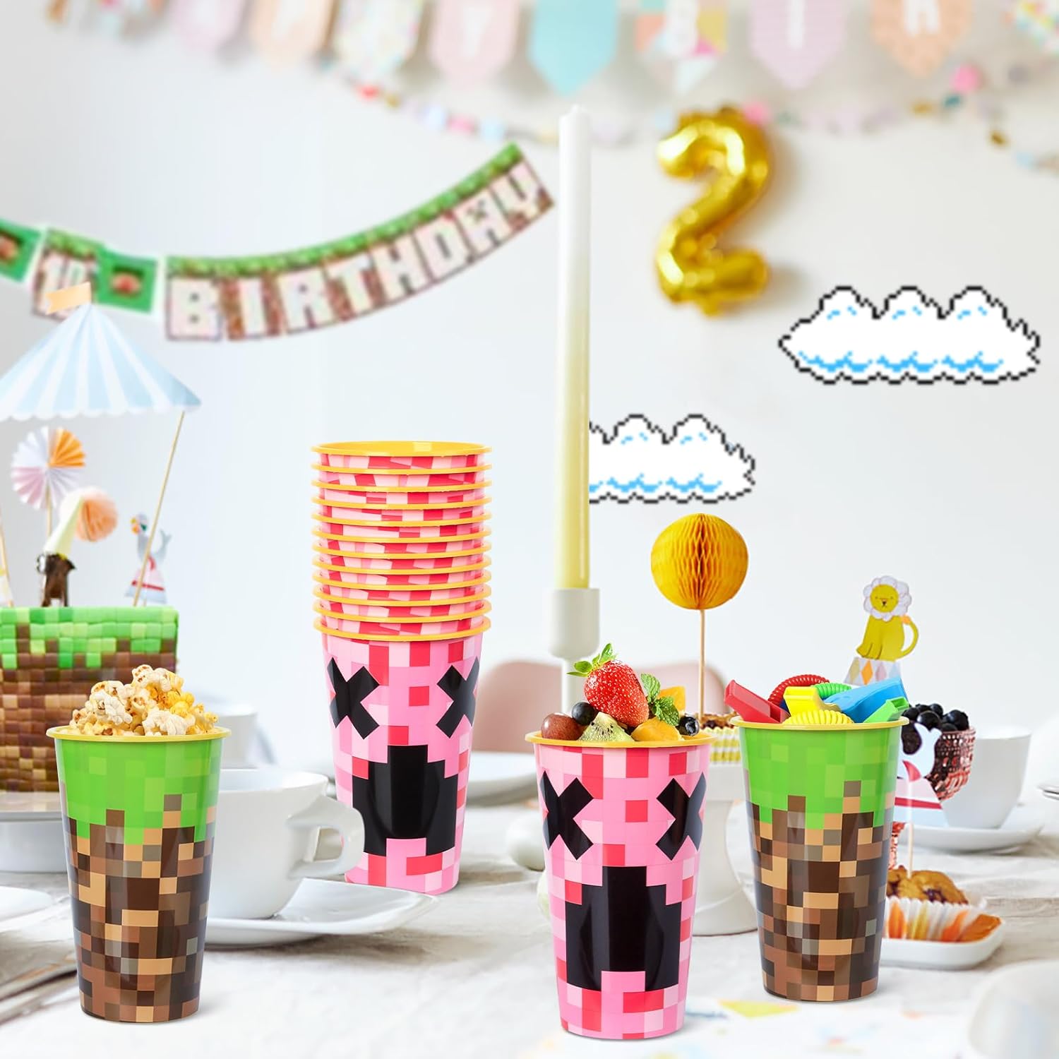 【A must-have for Pixel Party Favors】these pixel plastic cups are not only suitable for pixel miner game lover’s parties, but also can be used in pink or green themed birthday party, wedding, kids’ party, baby showers etc.