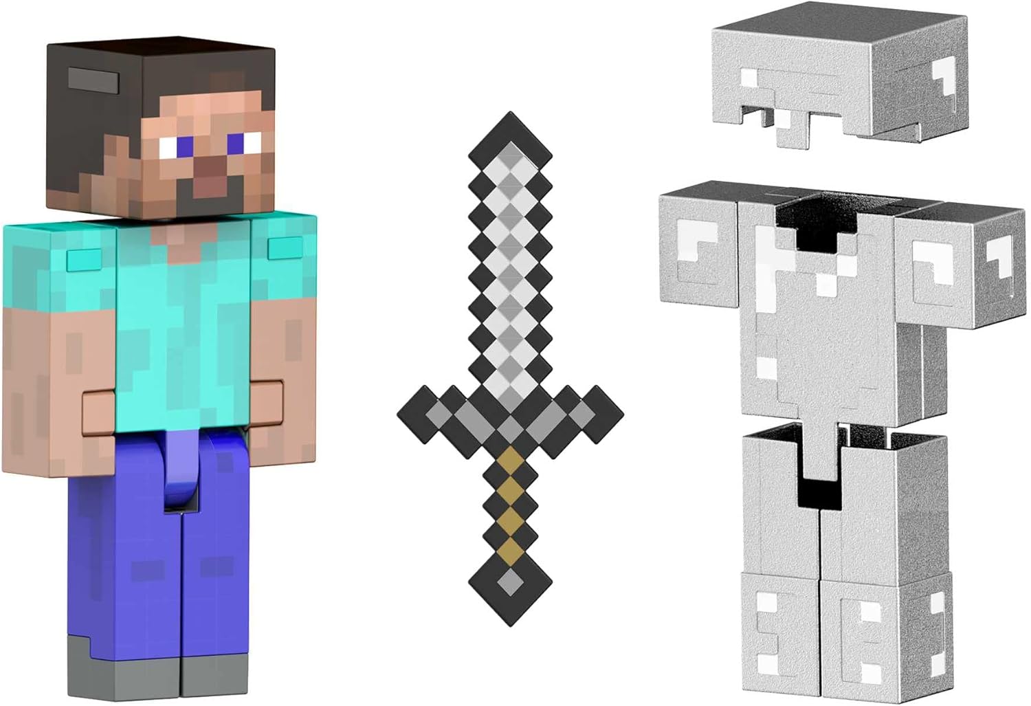 Behold — a collector-level Steve action figure designed especially for adults in the Minecraft Community! This Diamond Level Steve is crafted in a 5.5-iinch Collector Scale and comes with a real die-cast metal Iron Armor and Sword that can be removed. Pixel perfect colors and textures adorn his head and body. This master work is sure to become highly sought after and the centerpiece of any Minecraft collection. Colors and decorations may vary.