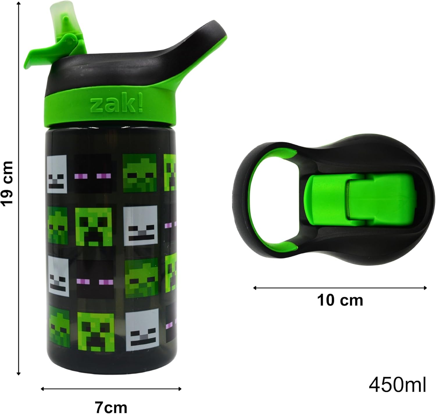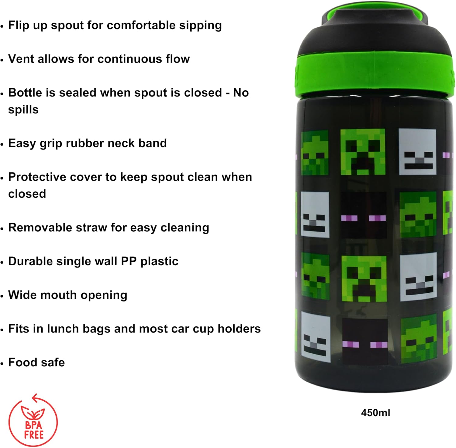 Minecraft Atlantic All Mob Heads Drinks Bottle | Eco Freindly BPA-Free Plastic School Water Bottle with Removable Straw, Spills Proof | Fan | Officially Merch 450ML