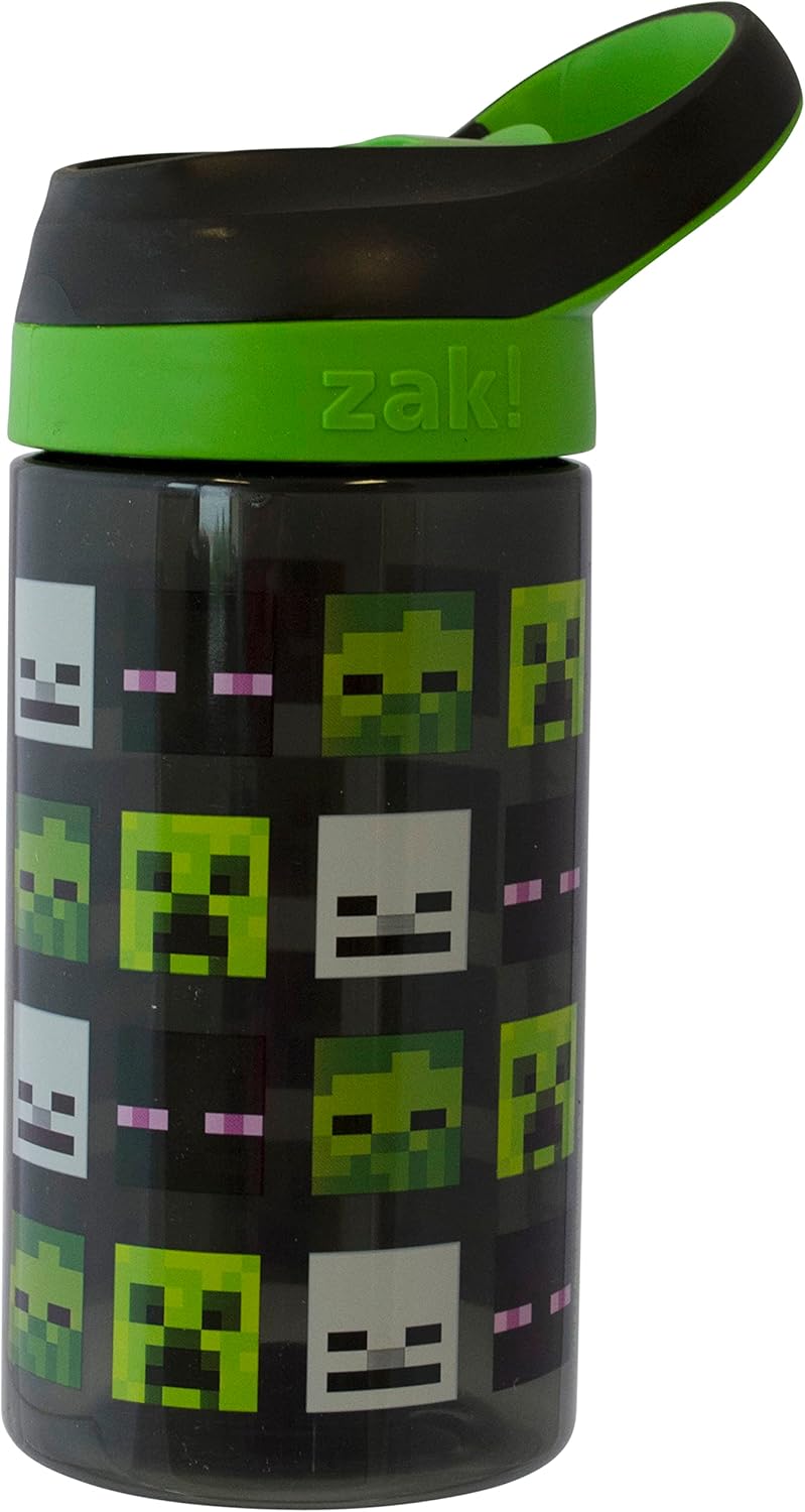 STRUCTURE – Stay hydrated in style with this striking Minecraft reusable drinking bottle. This eco-friendly water bottle features Creepers Endermans Skeletons Zombies on a translucent dark background. With a handle to carry it comes complete with a striking and convenient green flip-up straw perfect to keep your drinks safe from spills!