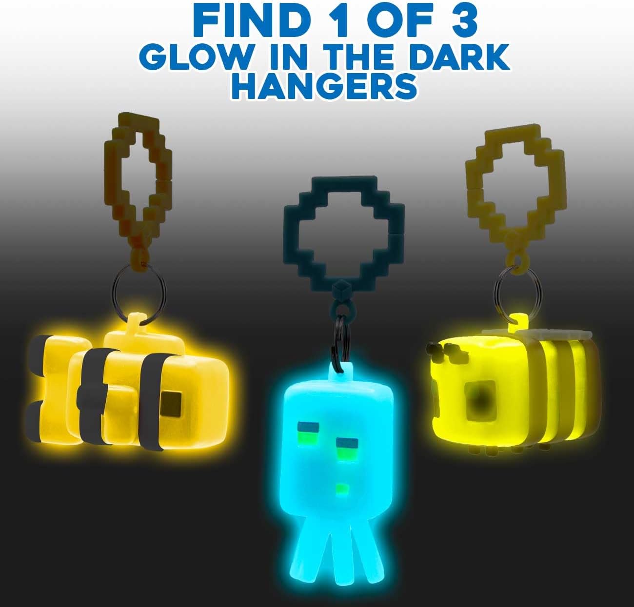 Decorate your backpack with these brand new officially licensed Minecraft Backpack Hangers. Take to school, in the car or play at home. If you like Minecraft, then you can not miss out on this amazing new series of hangers. Collect all 12 figures, including a bat, bunny, enderman, beem fish, squid, or THREE rare glow in the dark figures and THREE super rare real GOLD plated characters found in 1 of every 54 packages. Includes one (1) random Minecraft backpack hanger. Each purchase comes blind and at random.